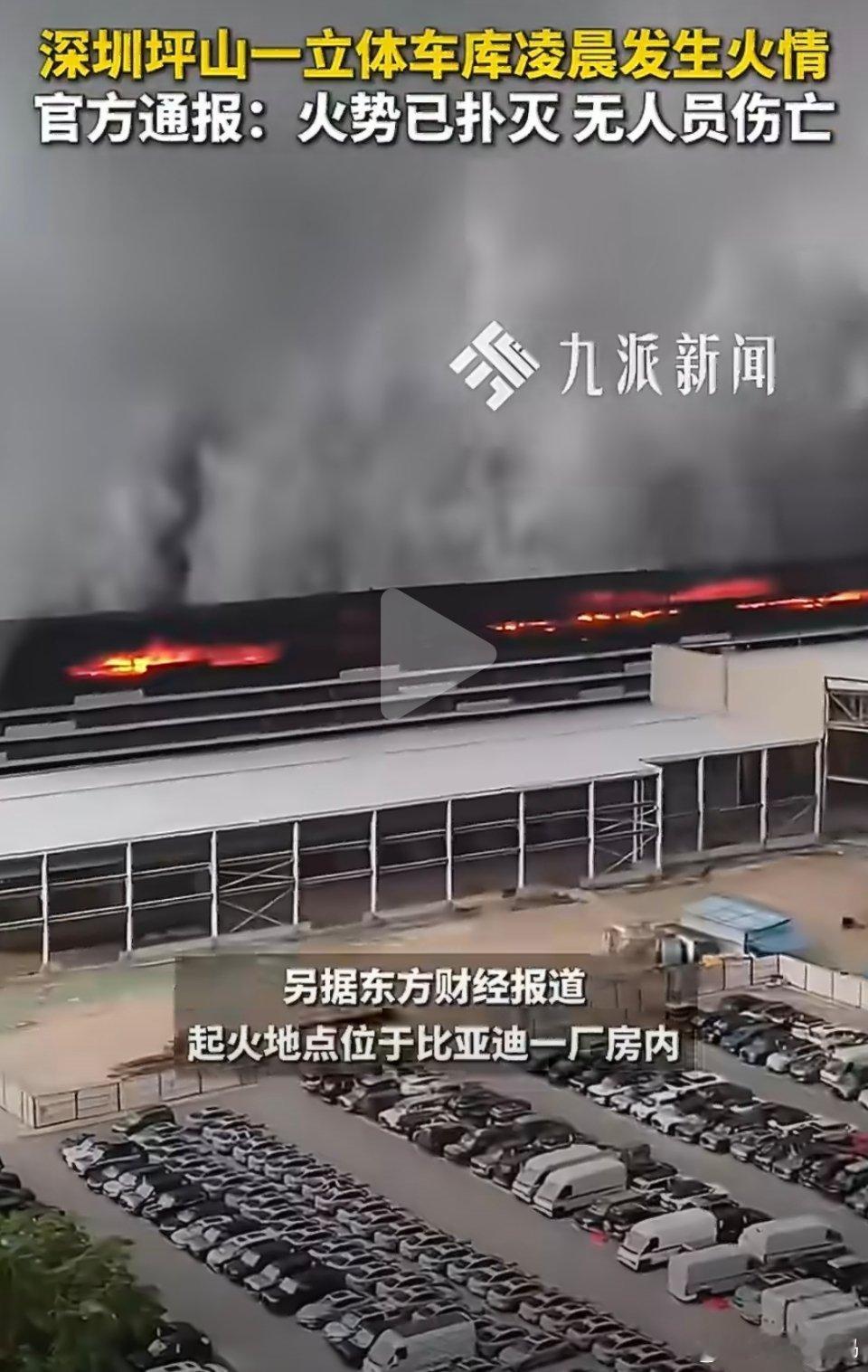 比亚迪回应深圳车库火灾附近的居民有点惨火灾产生的烟雾还是很大的加上这几天深圳天气闷闷热热立体车库还是不太安全啊