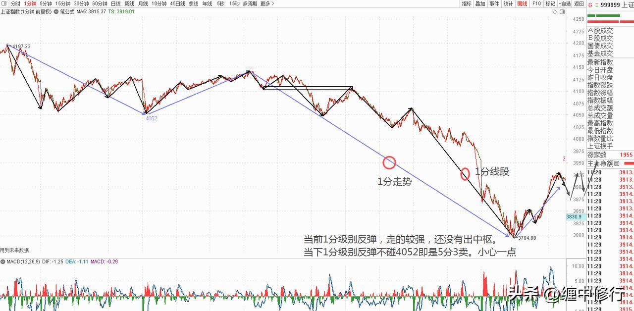 1分钟级别反弹,反弹不碰4052即是5分3卖,小心。不要追涨。