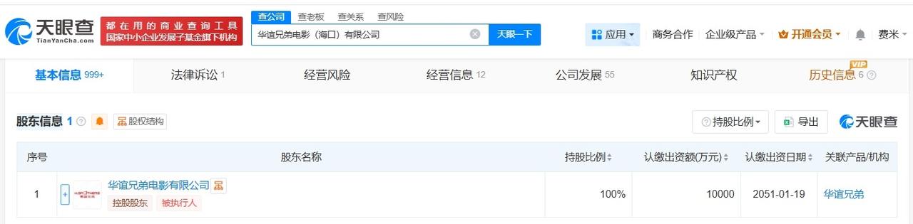 华谊兄弟电影公司1亿股权被冻结 华谊兄弟海口电影公司股权被全部冻结 天眼查App显示,近日,华谊兄弟电影有限公司新增一则股权冻结信息,股权所在企业为华谊兄弟电影(海口)有限公司,冻结股权数额1亿人民币,执行法院为浙江省东阳市人民法院。 华谊兄弟电影(海口)有限公司成立于2021年1月,法定代表人为王忠磊,注册资本1亿人民币,经营范围包括广播电视节目制作经营、电视剧制作、电影发行等,由华谊兄弟电影有限公司全资持股。 天眼查信息: