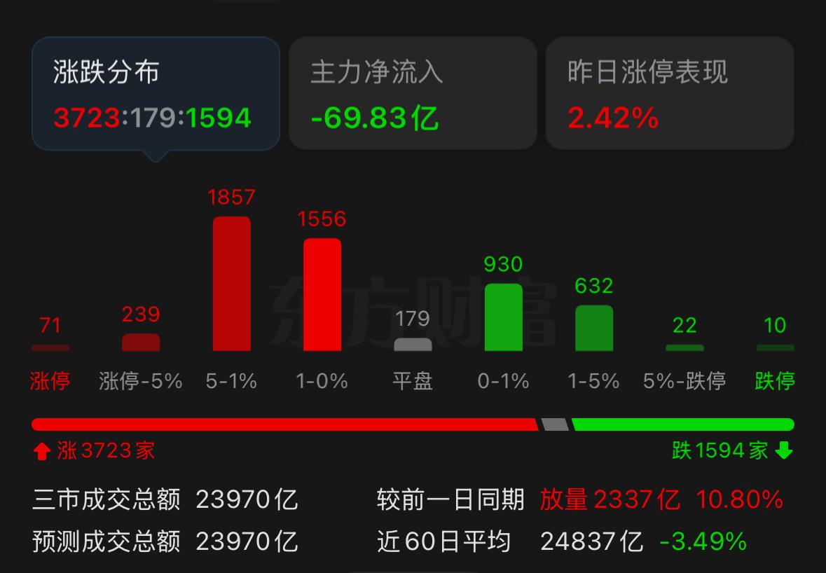 明天周三还能涨吗? 老吴认为明天大概率还会继续上涨,主要原因有两点: 第一点从市场结构来看,近期指数连续走出两根十字星,这是典型的观望整理信号,而在突破后的震荡观望阶段,市场连续两天重心上移,尤其是今天尾盘资金强势拉升,能明显看出多头资金信心十足,加上此前地缘局势逐步明朗化,市场担忧情绪消退,多头底气更足,后续顺势向上的概率很大。 第二点从成交量来看,今天两市成交量直接放大了2000亿,重新回到3万亿以上的成交水平,量能大幅放大说明市场分歧明显加大,有人离场有人进场,而最终指数依然高举高打,恰恰说明场外买入资金力度更强,接盘意愿十分坚决,综合这两点来看,当前行情顺势而为即可,继续看涨完全没问题。