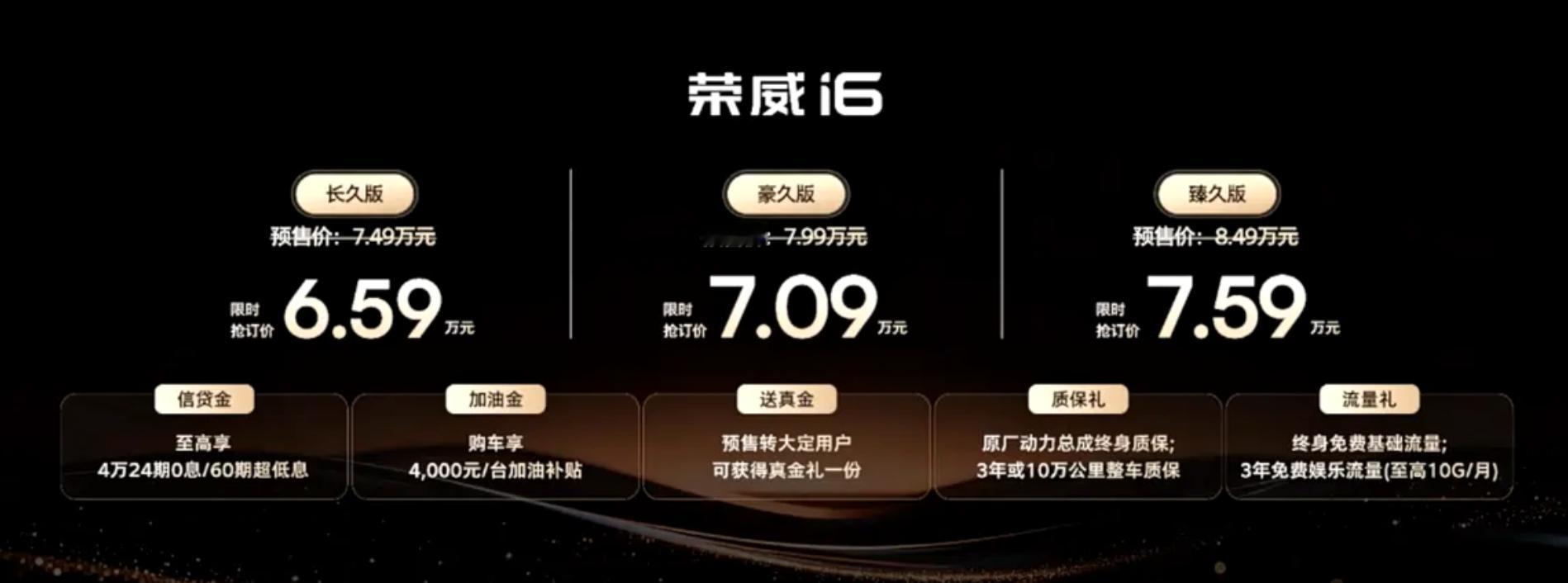 预售价7.49-8.49万,权益优惠后6.59-7.59万,曾经主打10-15万级家轿市场的荣威i6,如今也全面下探到了8万元以内,同吉利帝豪、长安逸动等正面交锋。