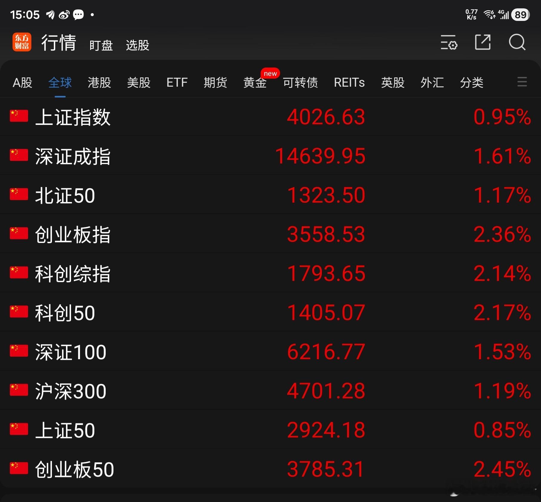 今天A 股大盘走势不错:东方财富App 显示的 10 项指数全体上涨收红,上证指数大涨 1.61% 涨 38.07 点至 4026.63 点,收复 4000 点关隘。 个股涨多跦少,行情好于昨天:沪深京三交易所中,上涨的股票有 3627 支,比昨天多 1375 支, 其中涨幅在 7% 以上的有 141 支,比昨天多 6 支; 持平的股票有 164 支,比昨天多 15 支;下跌的股票有 1527 支,比昨天少 1389 支, 其中跌幅在7%以上的有 12 支,比昨天少 18 支。三个市场全天的成交量为 23969 亿元,比昨天增量 2337 亿元。今天 A 股量价齐升,看来对中东地缘的影响反应已疲惫,入市资金也明显增加,慢牛已在回归的路上