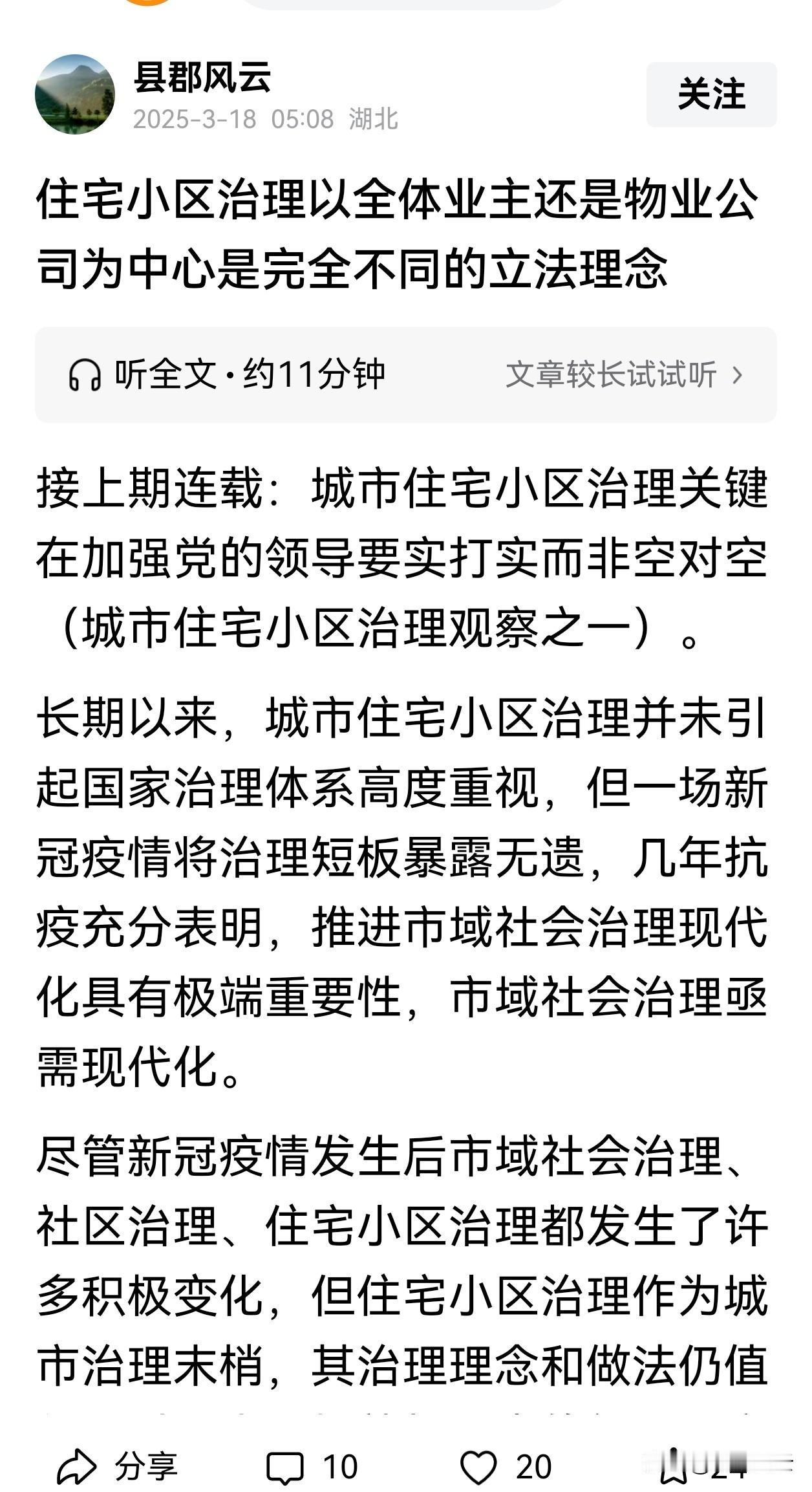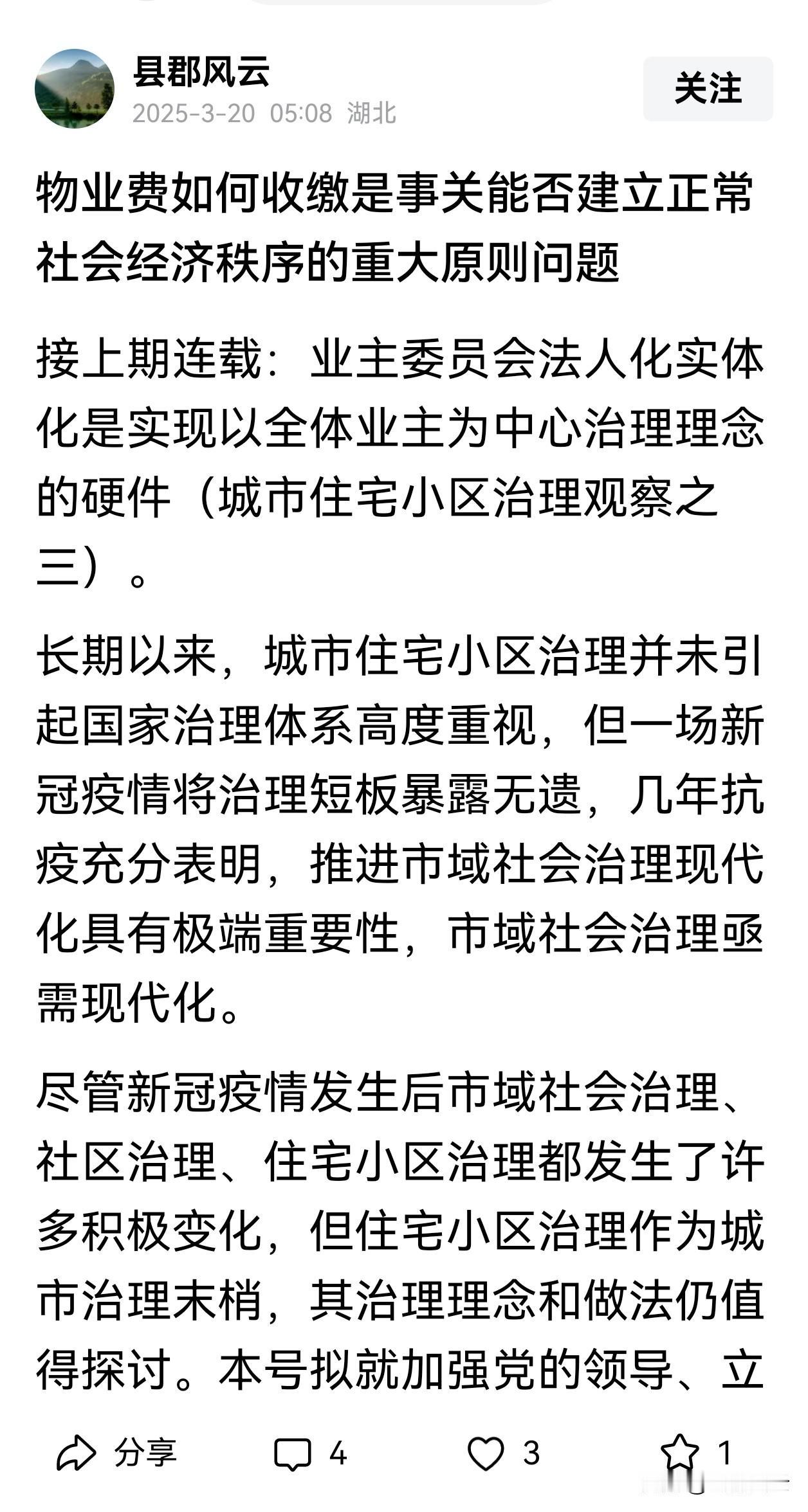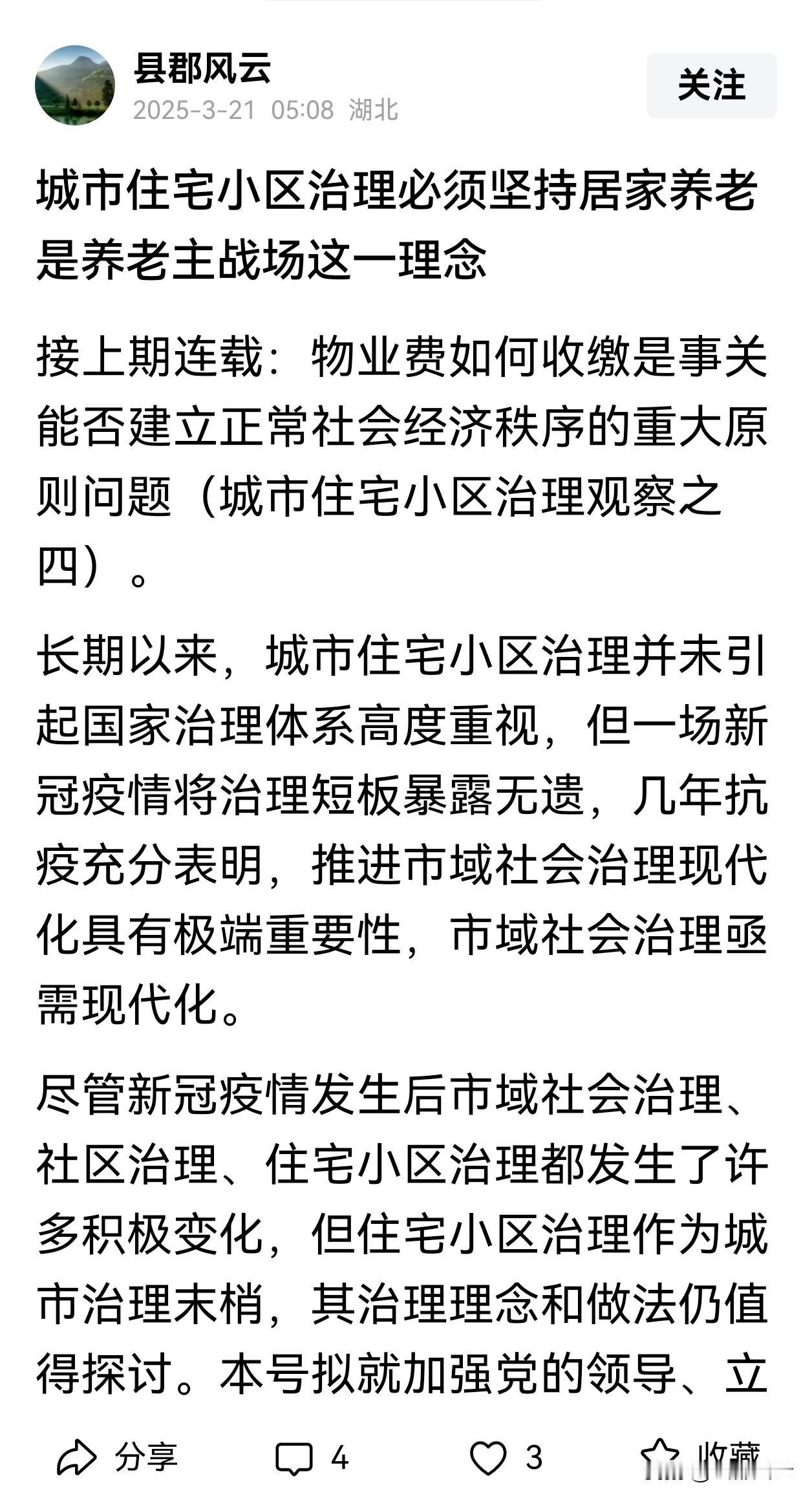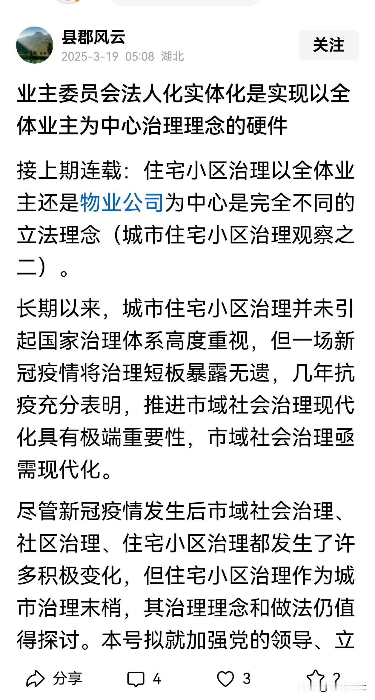 政策方向不对,必须以业主为中心。不是将《物业管理条例》修改为《物业服务条例》,而是以《业主委员会法》取代《物业管理条例》。 在《业主委员会法》背景下,首选自办物业,聘请专业物业由《民法典》经济合同予以规范,相应社区治理等工作并不是住建部的职能职责。 物业取消物业让社区来管,可行吗