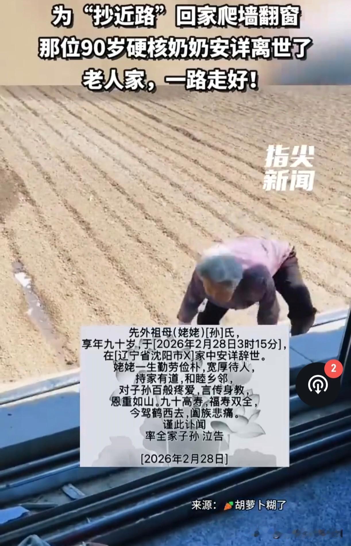 90岁还能翻墙爬窗的硬核奶奶突然去世,再一次提醒我们,任何人都会随时随地死亡。 因为忘记带钥匙,90岁还能翻墙爬窗的“硬核奶奶”,2月28日突然去世。 许多网友在倍感惋惜的同时,也发出疑问,她翻墙爬窗的动作那么娴熟轻松,感觉她身体应该非常硬朗,但是怎么突然就去世了呢? 其实,这个问题,有三个原因可以解释。 第一,从老人的年龄倒推,她大概出生在上世纪30年代,经历过那个年代的人,在青少年时期爬树翻墙那是常用的事,而这个技能一旦学会,一辈子都不会忘记。 就像小时候学会骑自行车,到了老年依然会骑。 第二,老人的身体看上去精瘦矮小,这种身材本身就比普通人麻利许多,而反观现在许多年轻人,四体不勤,身体超重肥胖,走个路都喘,怎么可能轻松翻墙爬窗? 第三,最关键的一点,人不是说衰老才会死掉,而是随时随地都可能死掉,短时间就死亡,原因很多,最常见的比如心梗或者脑梗,急性胰腺炎等等。 这些疾病不挑年龄,哪怕是运动员,上一秒还在生龙活虎地运动,下一秒就可能突然猝死。 为什么大众感觉这位90岁老太太突然去世感觉有些太过突然呢?其实就是她的身份反差造成的,身体麻利,总感觉她还能再活20年似的。 假如她之前走路颤颤巍巍,甚至卧床不起,那么就不会有人感觉她离世得突然了。 如何避免各种突发猝死,除了平时要有良好生活方式外,还要及时体检,发现问题及时应对,血压高降血压,血糖高控血糖,血脂高降血脂,心脏有问题,该放支架就放支架… 如此,才能让我们最大可能避免突然猝死。