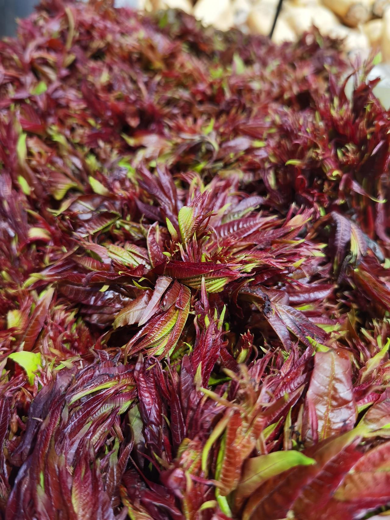 逛菜场一眼就被这堆红色的香椿芽吸引了,这是春天才有的美味。 刚冒头的香椿芽带着独特的清香气,红褐的嫩梢裹着一层细细的绒毛。每年就这短短一个月的尝鲜期,错过就要等一整年。 回家焯个水,切碎了和鸡蛋一炒,满屋都是香气;或者拌上嫩豆腐,清清爽爽一口鲜,连饭都能多吃两碗。
