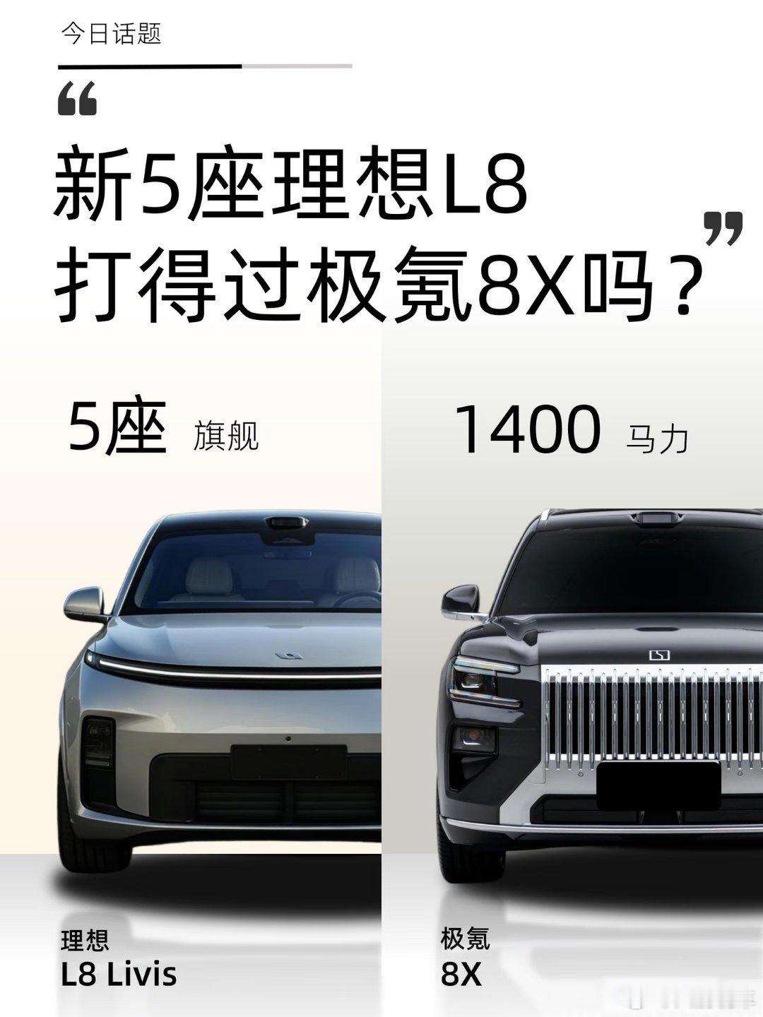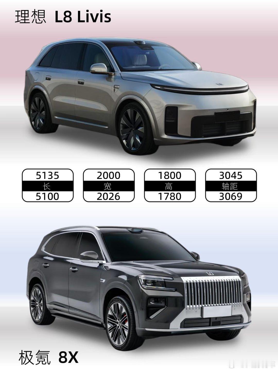 理想L8 Livis出现在最新的工信部新车目录中值得一提的是,这是一款大五座SUV,打破了理想现有车系的命名规律。1️⃣尺寸理想L8:5135*2000*1800mm,轴距3045mm极氪8X:5100*1998*1780mm,轴距3069mm2️⃣电池欣旺达制造的72.7度的5C超充三元锂电池。WLTC纯电续航里程达335~343km宁德时代的70度的6C潮虫三元锂电池。WLTC纯电续航里程为256~328km3️⃣动力全新L8搭载理想全自研的1.5T增程器,最大功率为115kW。目前暂无电池功率的数据极氪8X全系搭载2.0T增程器,最大功率205kW。耀影版电机最大功率1400马力!你觉得新理想L8会是运动取向吗?新车发布 理想 理想L8 极氪 极氪8XRCC飞驰计划 玩车无格式
