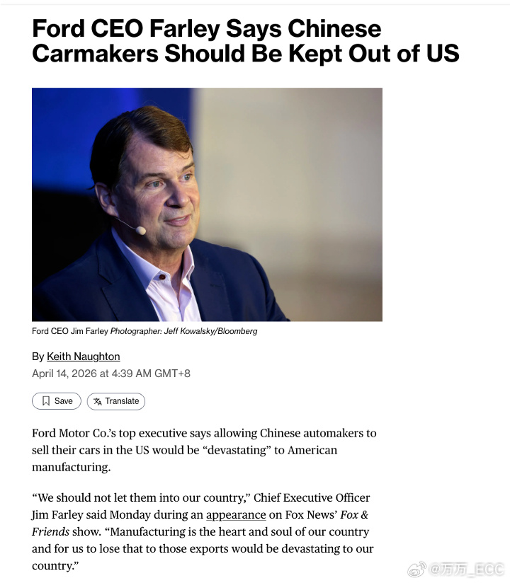 这话说得挺直白,但味儿不对。福特在中国卖车卖了这么多年,赚得盆满钵满,从没说过中国消费者威胁国家安全。现在中国新能源车技术上来了,国产新能源的全球销量都超越了,他就开始嚷嚷不公平、搞数据安全那一套。嘴上讲公平竞争,身体却直接搬出100%关税当护城河。 更双标的是:一边禁止中国车进美国,一边又偷偷找中国车企合作、学技术,打算2027年出低成本电动车对标。这不就是“你教我怎么造车,但别想进我家卖”?有趣的是,他去年公开盛赞SU7,从上海空运了一辆到芝加哥,称自己开了半年根本不想还。 不过话说回来,如果哪天中国车真大规模进了美国,你觉得是“毁灭打击”,还是逼他们真正进步?