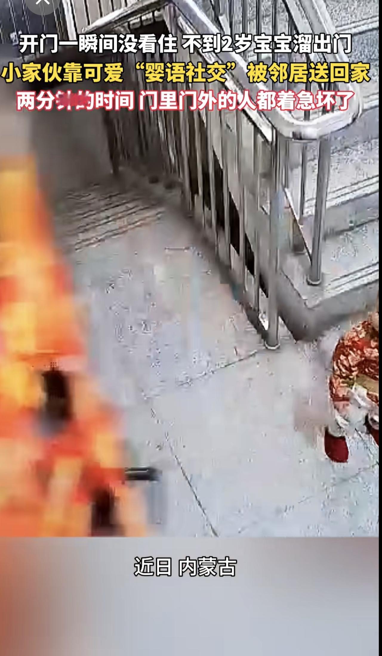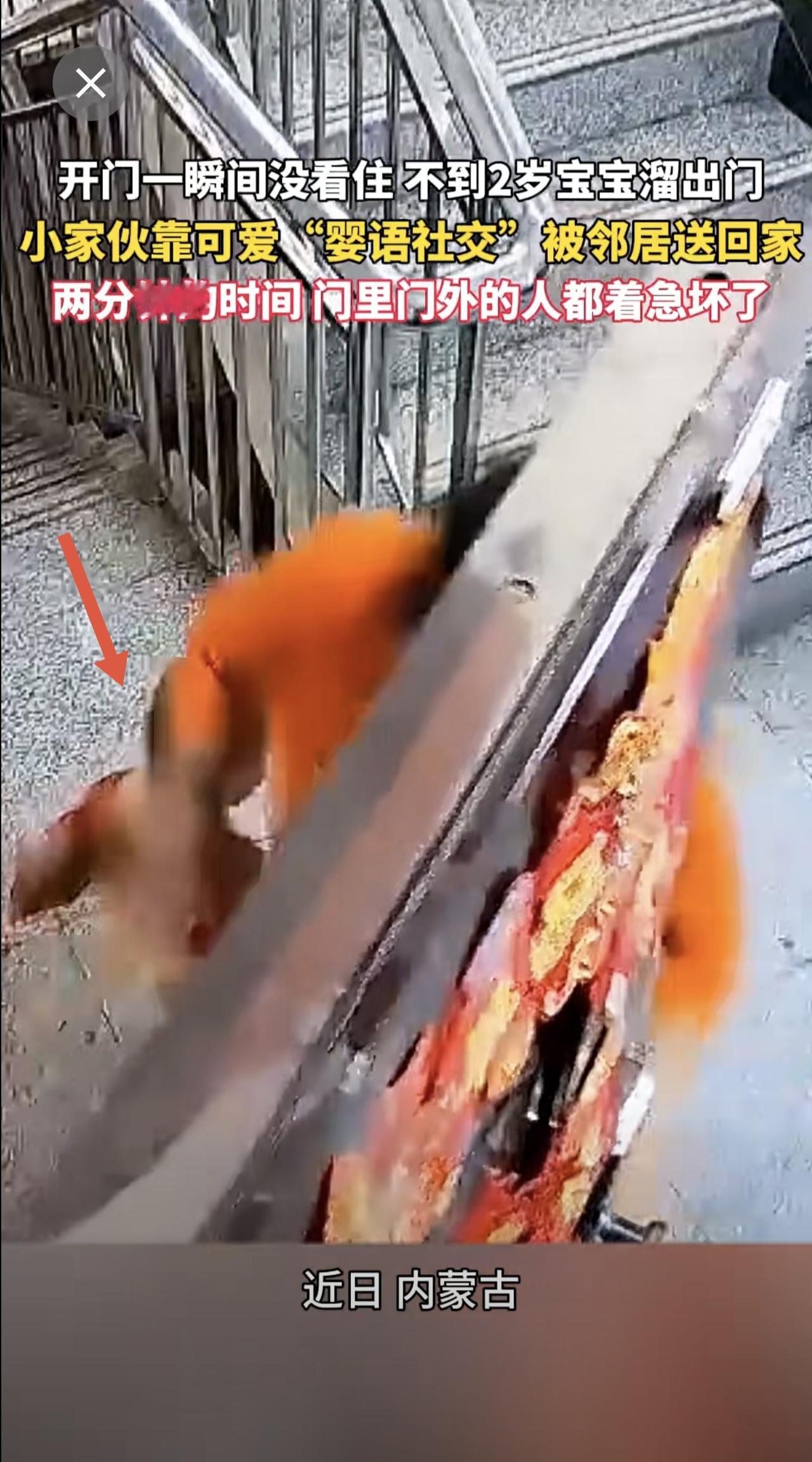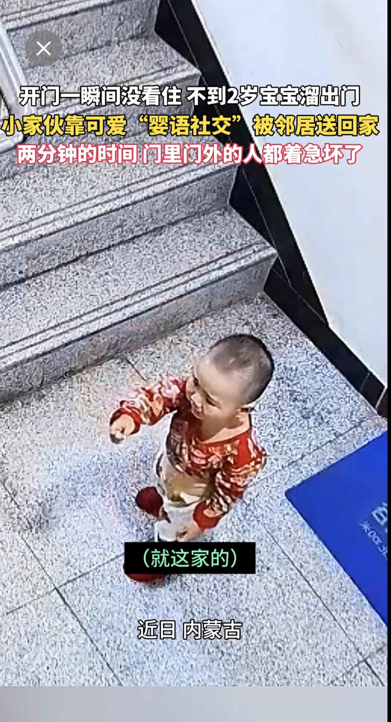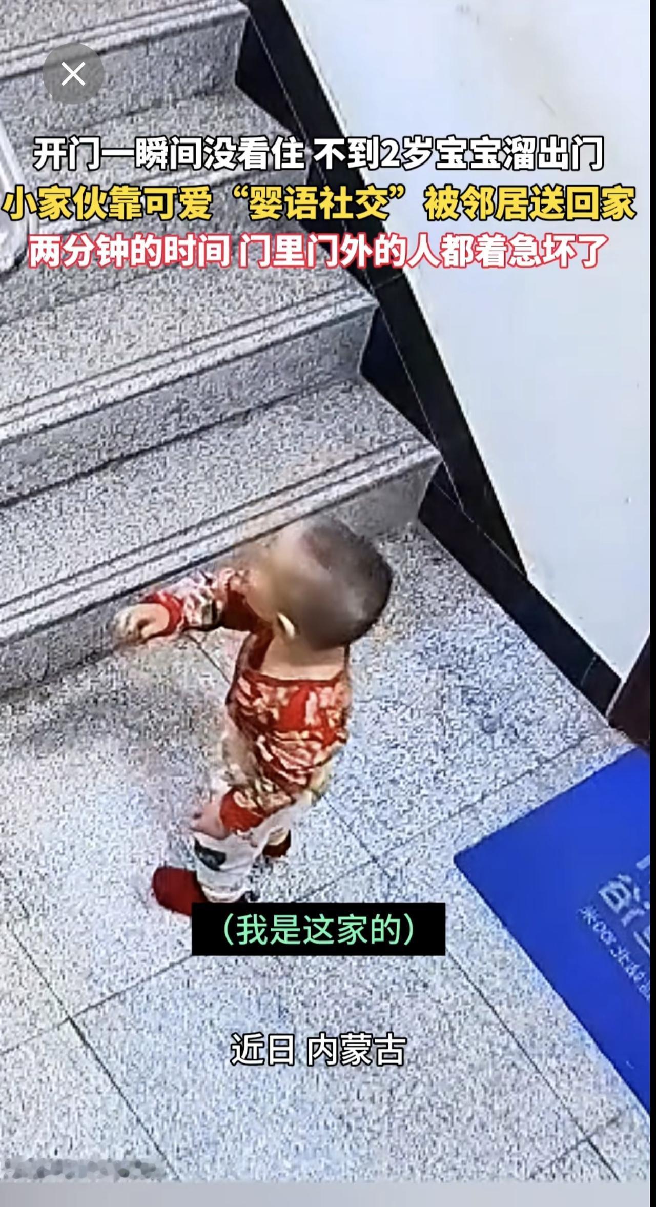 不到2岁宝宝溜出门,靠可爱“婴语”社交被邻居送回家。来源:小不点