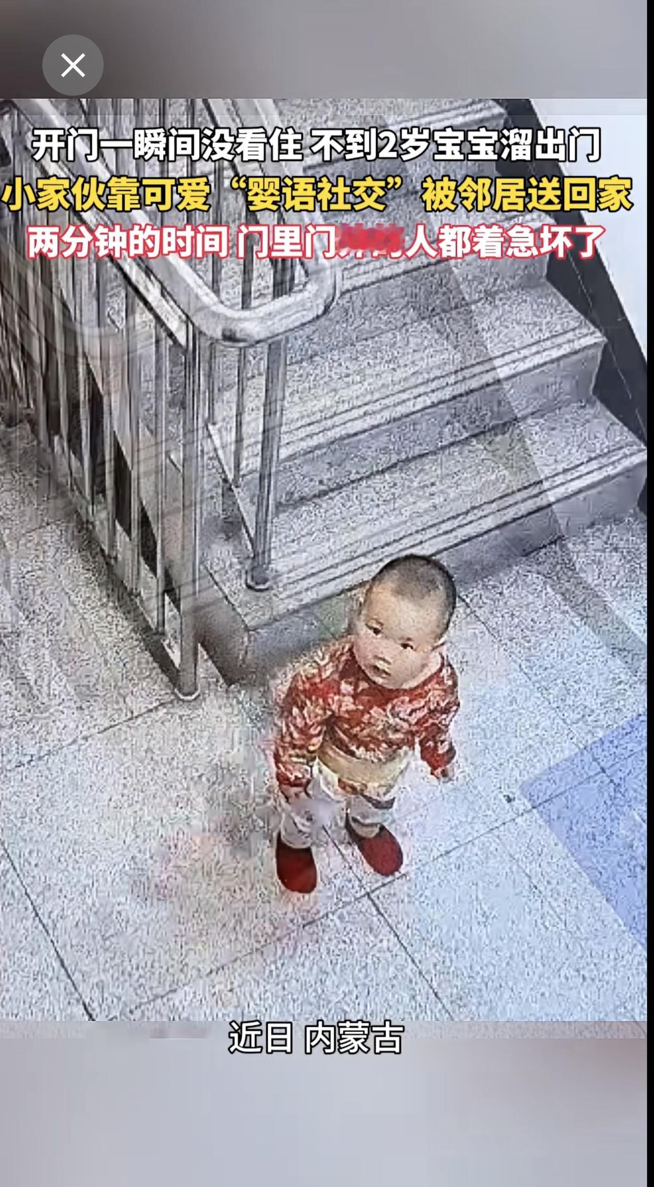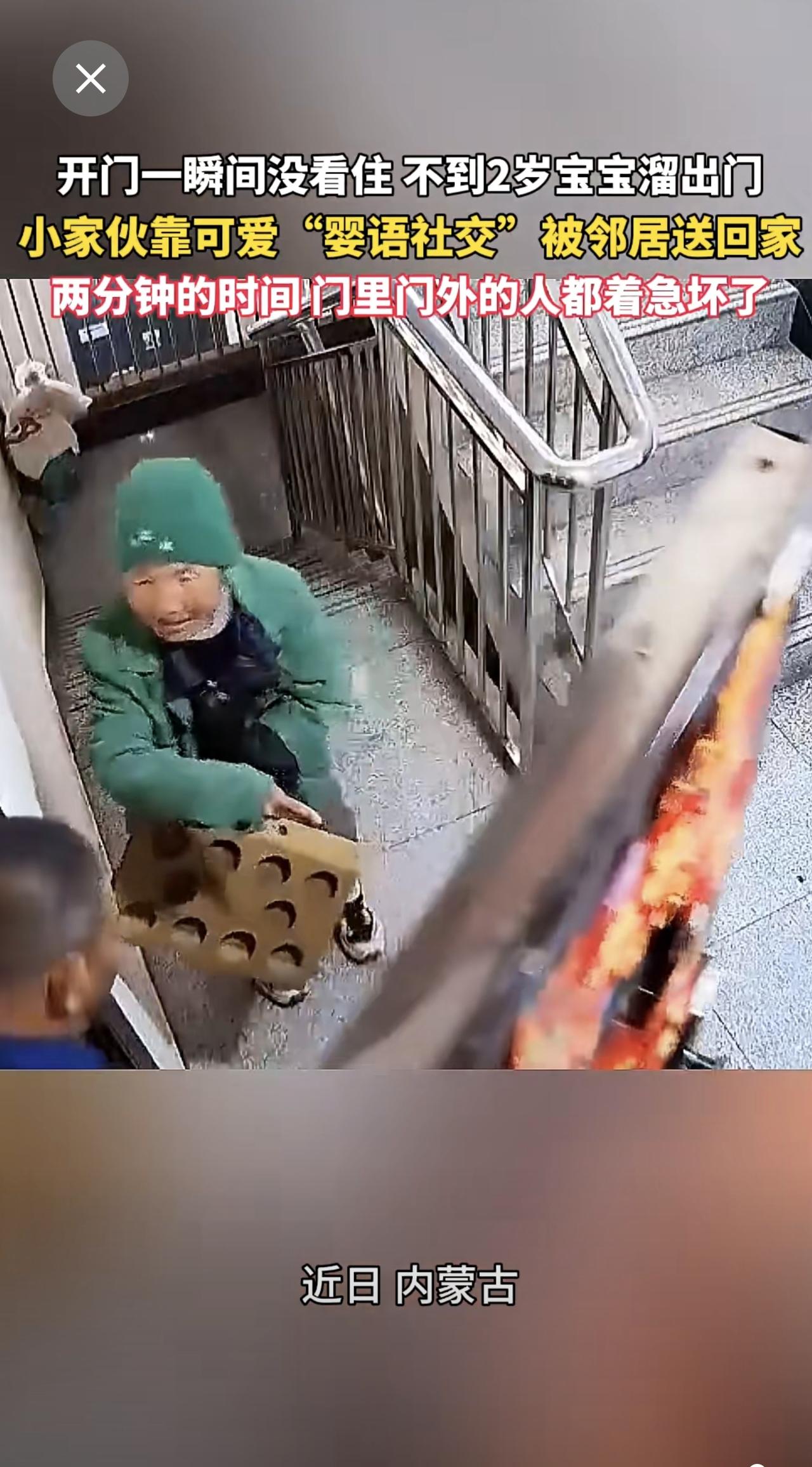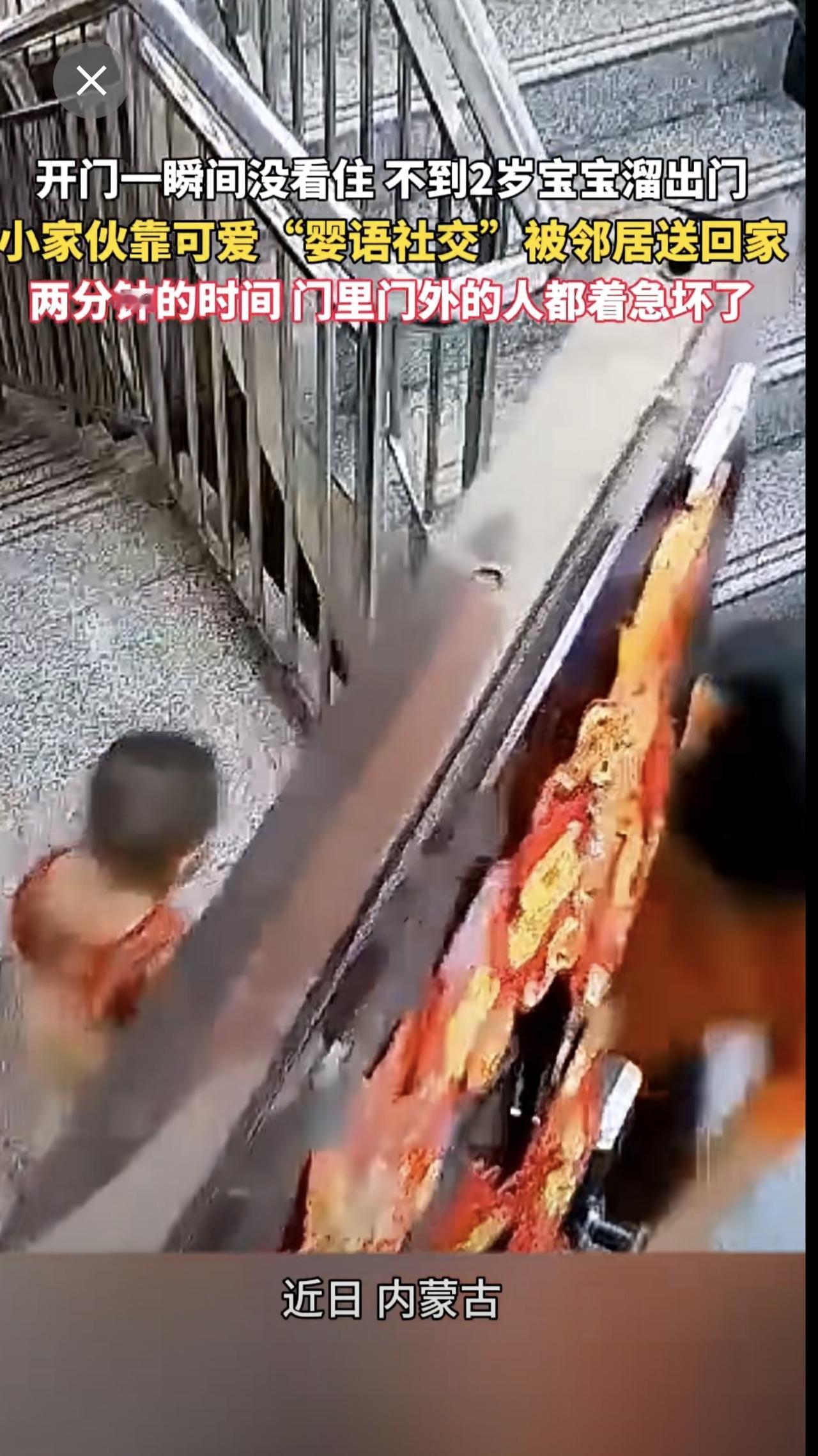 不到2岁宝宝溜出门,靠可爱“婴语”社交被邻居送回家。来源:小不点