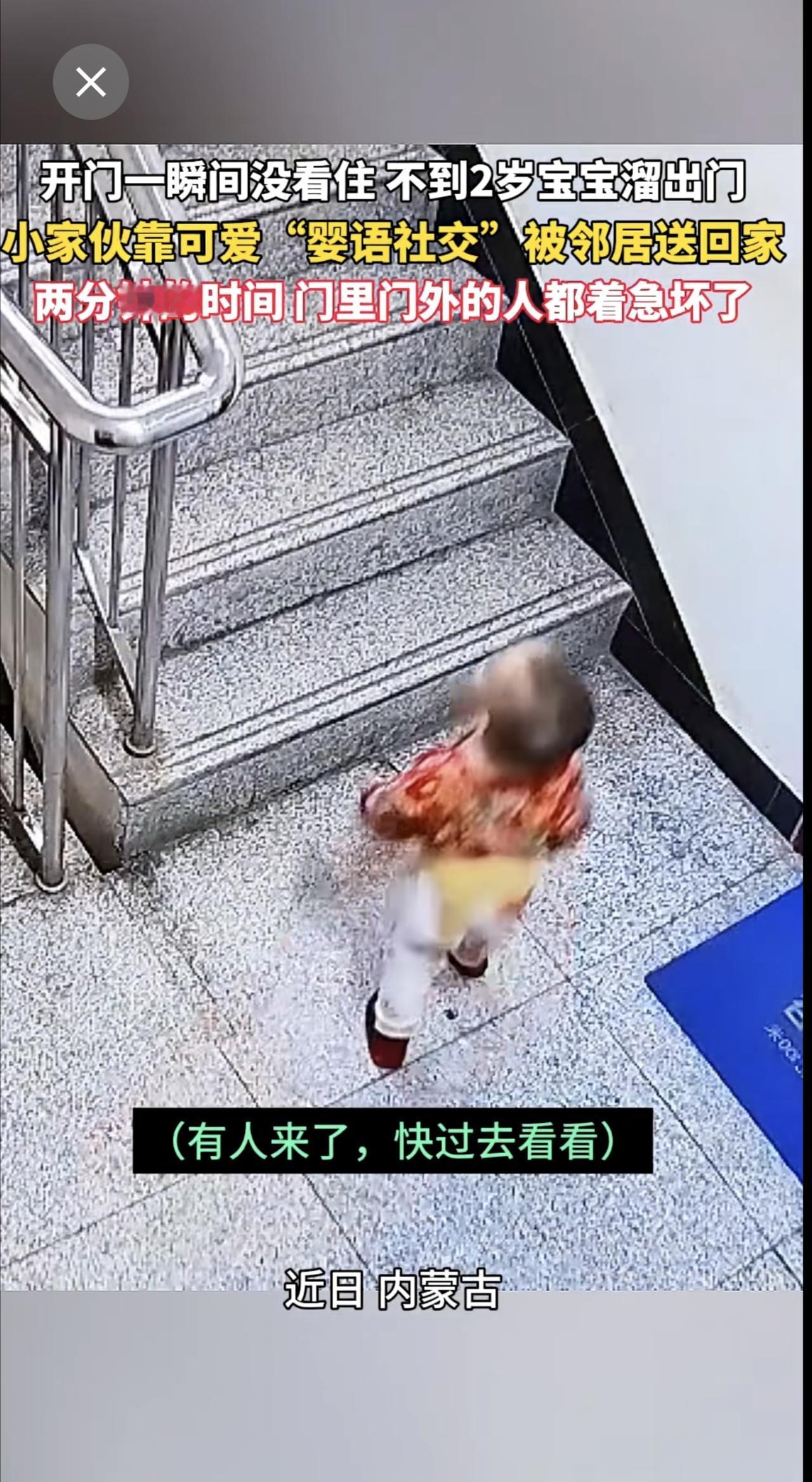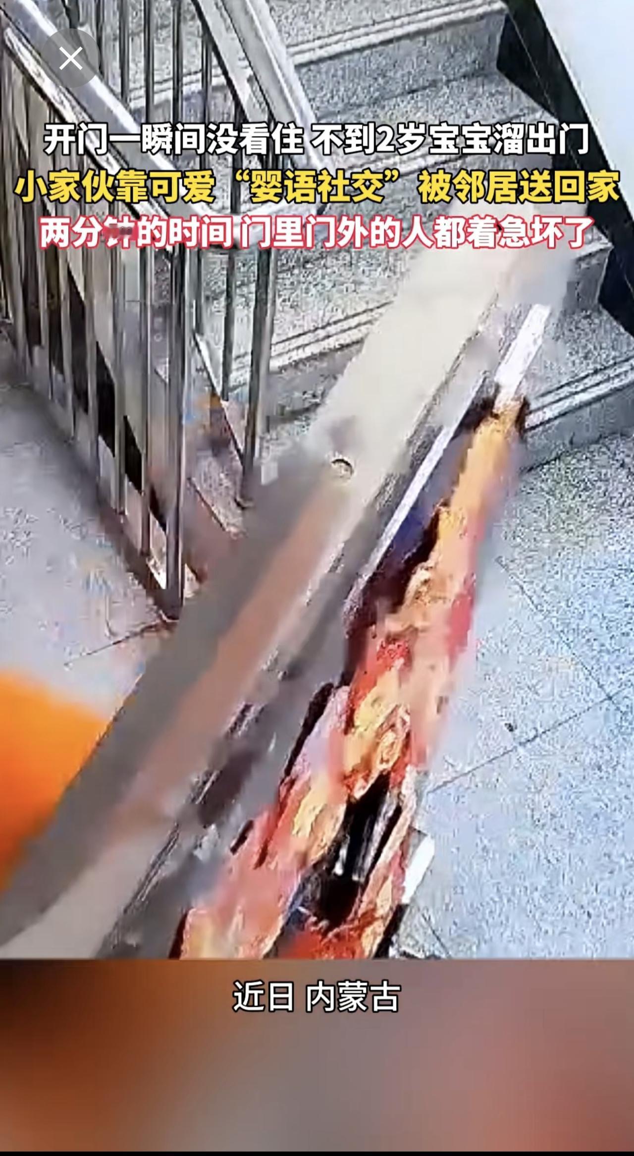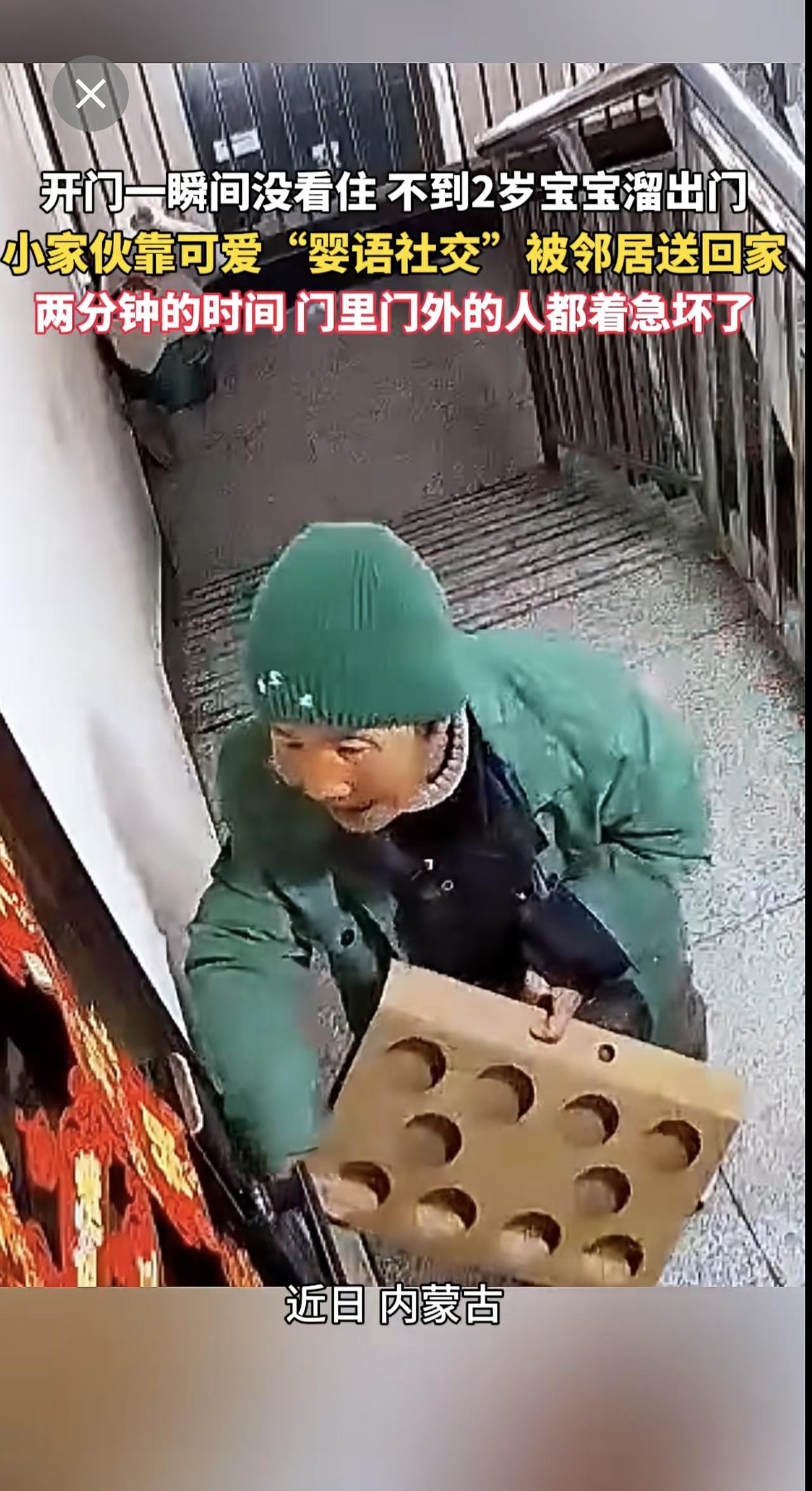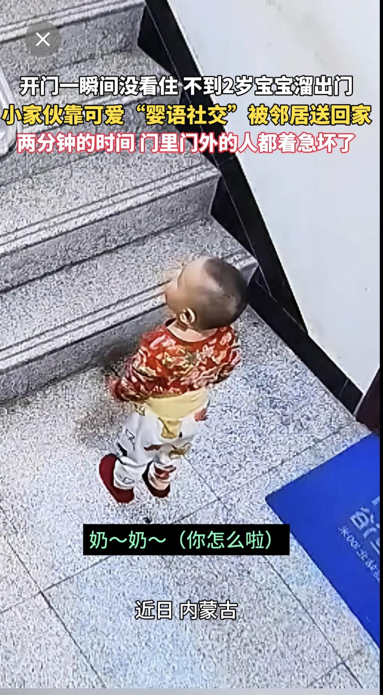 不到2岁宝宝溜出门,靠可爱“婴语”社交被邻居送回家。来源:小不点