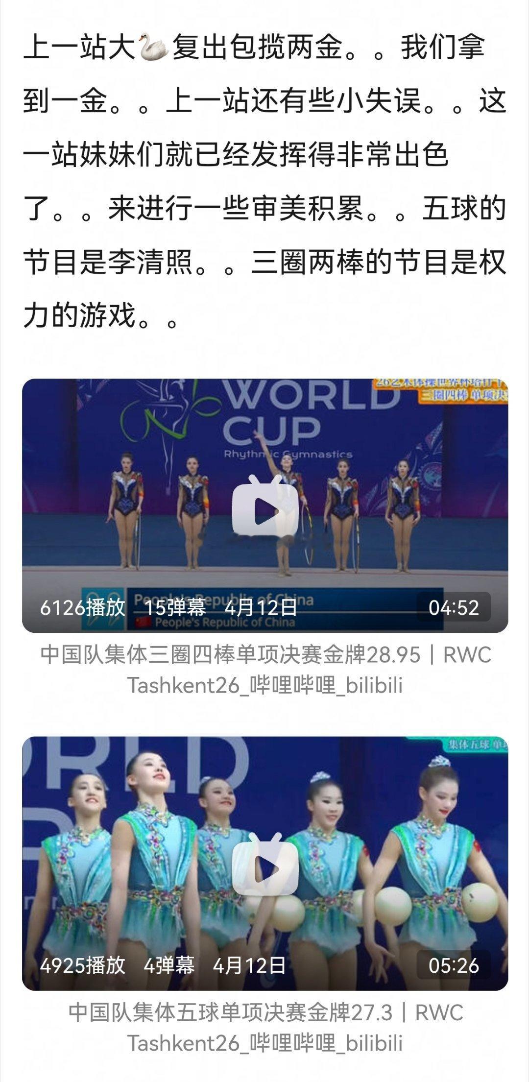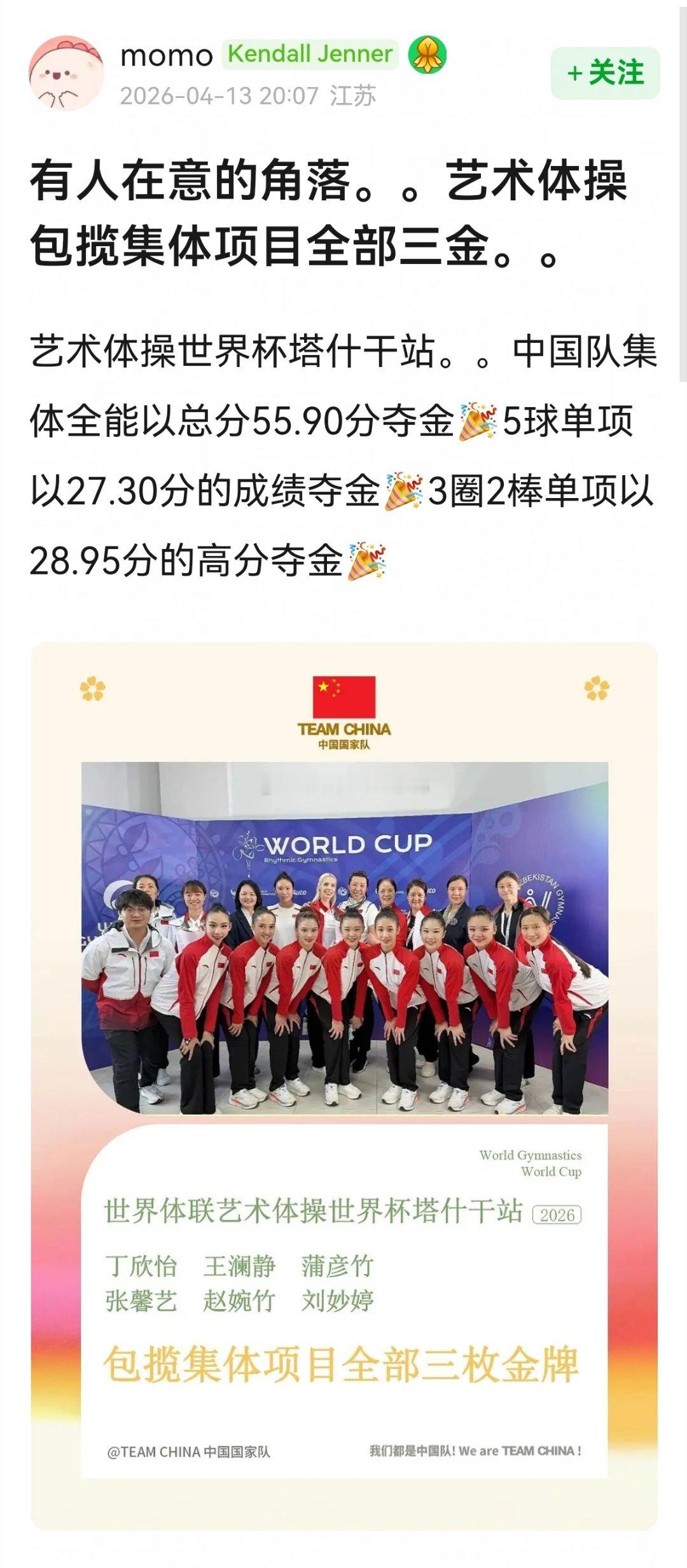 艺术体操包揽集体项目全部三金,太棒啦!!