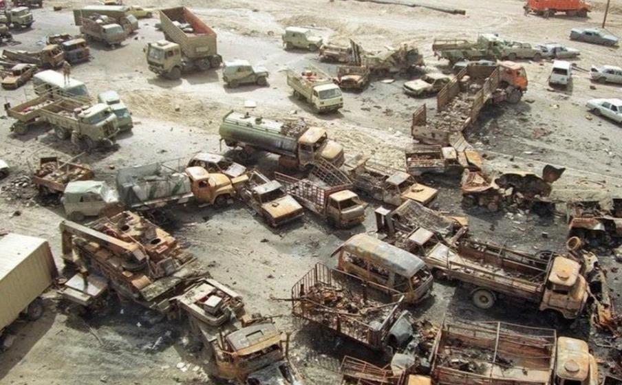 这是一段被美国媒体禁播多年的影像,记录了海湾战争中最黑暗的80号公路惨案,又称“死亡公路”。1991年,伊军按决议从科威特撤军,萨达姆下令伊军24小时内撤回本土,十万余名伊军及平民组成的车队,沿80号公路撤离,却遭美军无差别轰炸。这场屠杀持续48小时,超1万人死亡,美国的行为违反了日内瓦公约,成为海湾战争中难以抹去的伤痛。