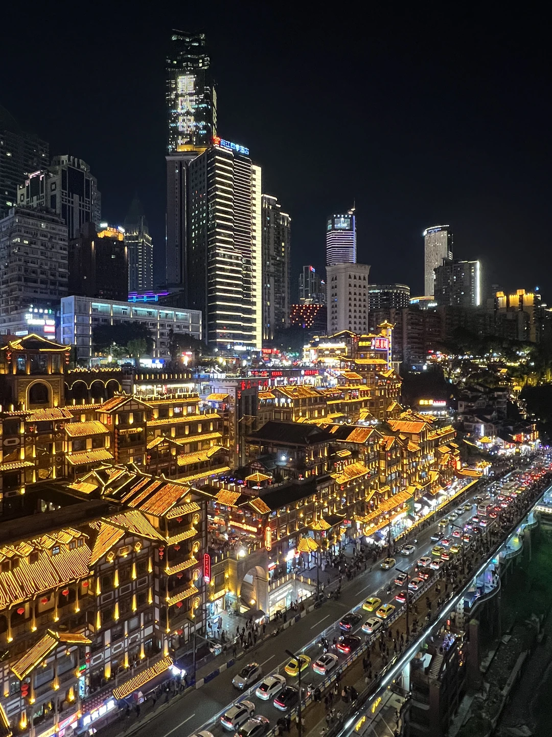 5、洪崖洞里面真的没必要进去,1楼到11楼全是卖烤肠、水果捞、纪念品和采耳、拍写真的,而且电梯很多人,还慢,想看洪崖洞夜景建议去戴家巷、千厮门大桥、江滩公园,千厮门大桥一定要把手机拿稳啊