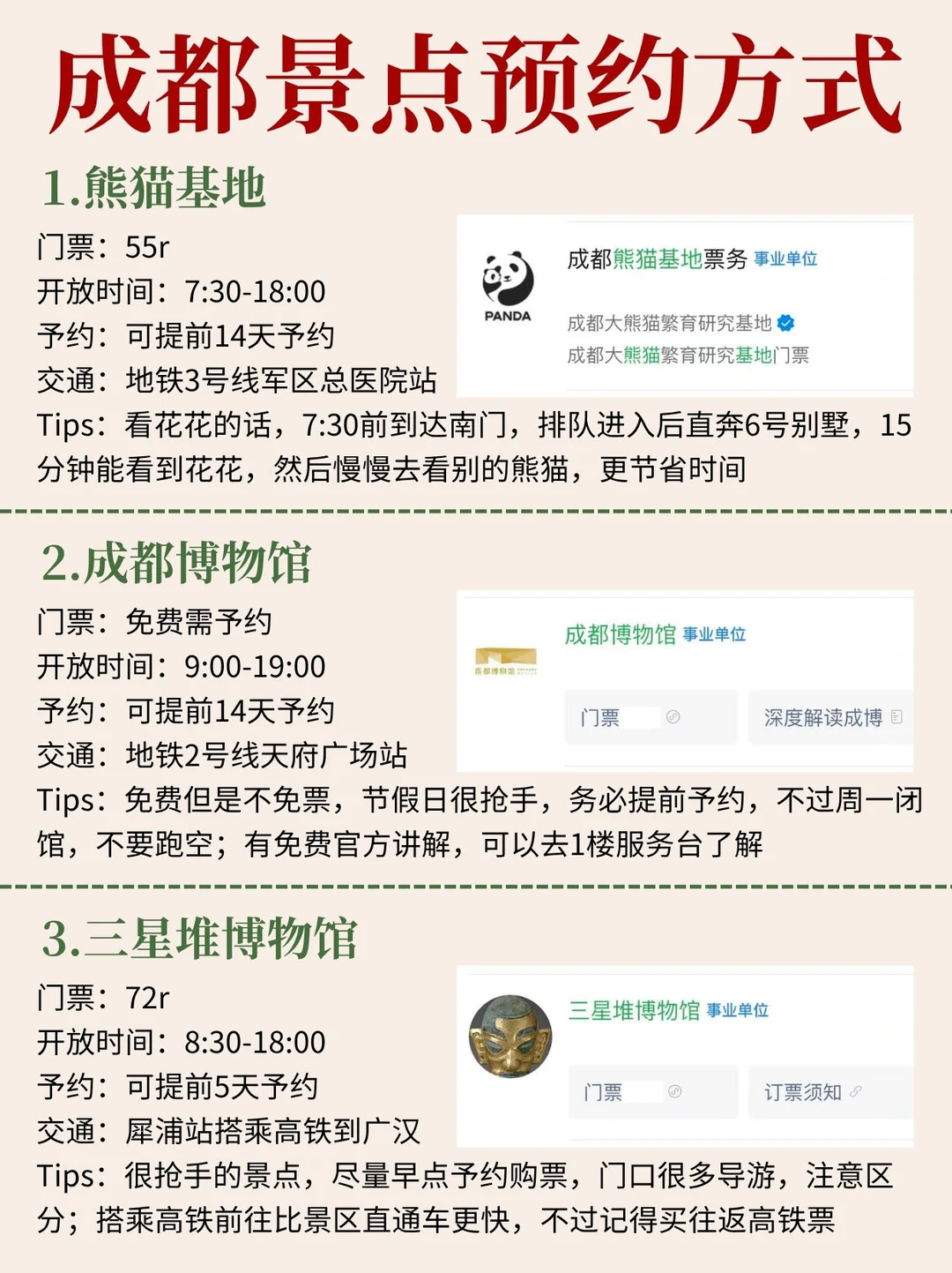 看看谁来成都还不知道要提前予约!马上五一啦~给大家整理了需要予约的景点,还有交通、住宿、避雷指南和美食,希望大家来成都玩得开心!