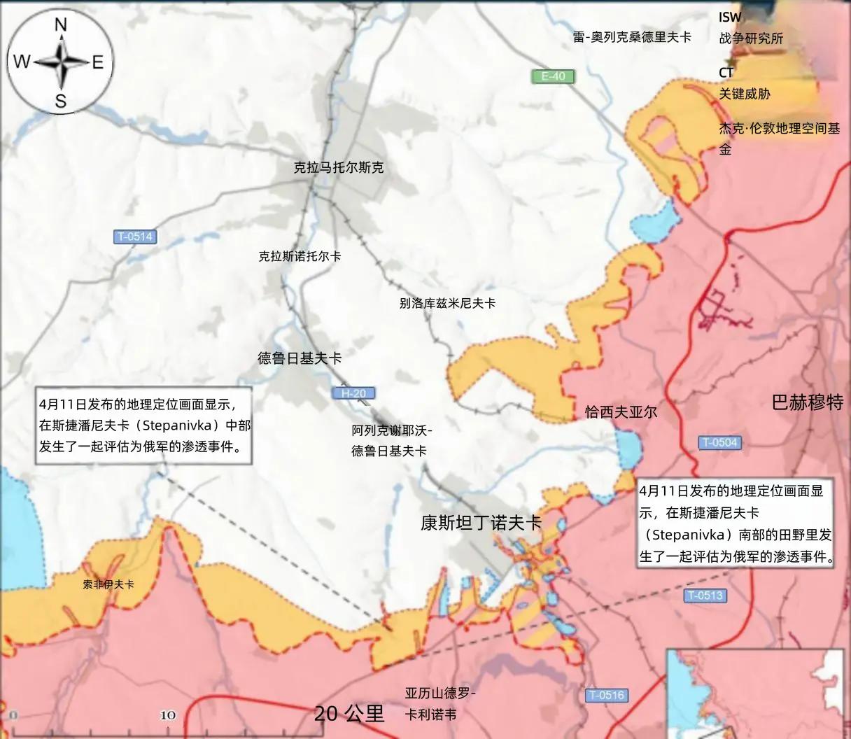 决战双子城之外围争夺:乌军在红利曼推进,俄军在康城南部渗透 4月12日发布的地理定位视频显示,乌军在红利曼东北方向完成战线推进,这是该方向近期为数不多的、具备实锤证据的乌军进攻成果,进一步巩固了乌军在红利曼外围的防御阵地,同时对俄军侧翼形成一定压制。 战场未经证实的消息层面,俄罗斯军事博主发布消息称,俄军已攻占斯拉维扬斯克东南方向的利普伊夫卡与费多里夫卡-德鲁哈两处居民点;同时,多名俄军事博主宣称,俄军在红利曼北部、东北部,奥泽尔涅以南,以及克里瓦卢卡以西区域(后两处均位于红利曼东南方向)均取得战线推进。 4月12日至13日,俄军在红利曼和斯拉维扬斯克及周边全域发起多轮地面进攻。 4月11日发布的地理定位视频显示,俄军在康斯坦丁诺夫卡南部此发起两次渗透行动,试图突破乌军防线,乌军随即对斯捷潘尼夫卡(康斯坦丁诺夫卡西南)内部及南部的俄军阵地实施精准打击,成功遏制俄军渗透企图。 未经证实的消息显示,俄军事博主宣称俄军在康斯坦丁诺夫卡西南、南部,以及伊利尼夫卡西南(康斯坦丁诺夫卡西南方向)实现推进。 (图文部分参考战争研究所报告)
