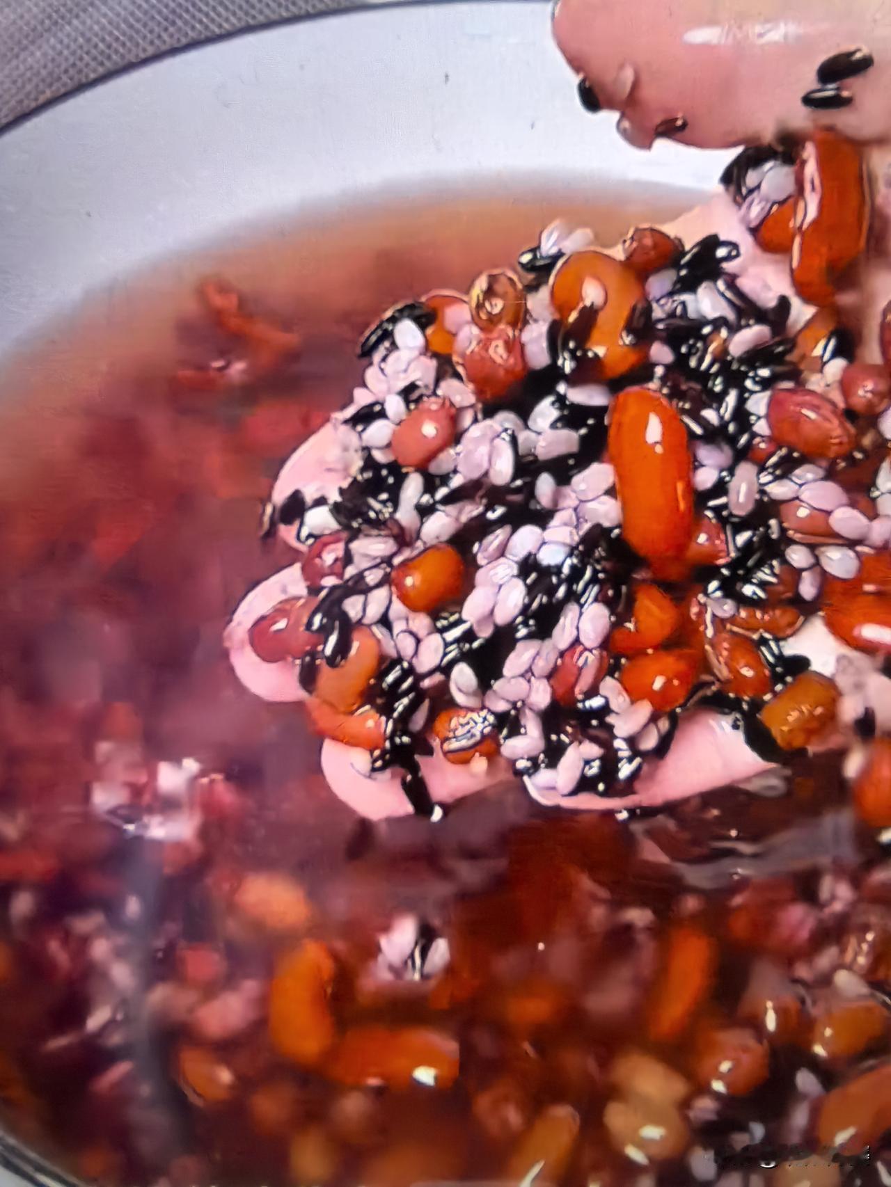 我隔三差五就会蒸点混合面杂粮馒头吃,好吃又营养 东北人爱吃面食,尤其是爱吃馒头,自己做的馒头主打健康营养,麦香混合着杂粮的香甜,暄软又有嚼劲,比外面买的好吃太多了,空口吃都超香 收拾厨柜,发现有好几样杂粮,黑米,红豆,大芸豆,还有一点圆粒江米,一样一点,都把它洗净了泡上10个小时左右,然后倒锅里,又加了一把红枣,把红枣去核切四半,一块煮上30分钟,泡过的杂粮容易熟,盛出把它放凉,尝一口又香又糯,都不用額外加糖,红枣的甜度就够了,大芸豆和红豆的粉糯,用它做馅真的可好吃了 煮杂粮的时候,我就发了一块面,馒头面一斤面半斤水的比例,杂粮煮好了面也发了,我用的安琪升级版的酵母,发面可快了,把面排气,分成小剂子,馅放凉了包上馅,进行二次醒发10分钟左右,冷水上锅,上气计时蒸15分钟,焖3分钟就出锅 无糖的杂粮馒头,吃不完可以冻上,吃时再蒸一下,一样好吃,还是自己蒸的馒头好吃,不为别的,就喜欢蒸馒头时的那种气息和味道,品味三餐的烟火气 好好吃饭,好好生活