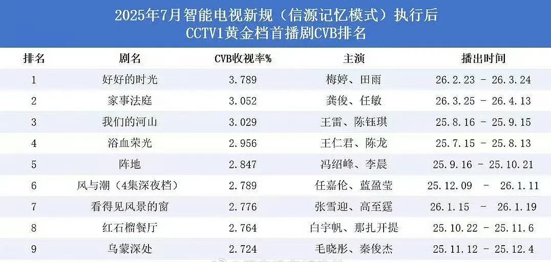 龚俊演员花期还是算长,积压剧家事法庭口碑貌似还不错,豆瓣从7.2涨至7.3,cvb集均破3,实打实的上星实绩到手,现在之前资源不算好的项目也都播出了,后续都是正儿八经的大投资男频剧,90赛道还是可以再拼一拼的!家事法庭