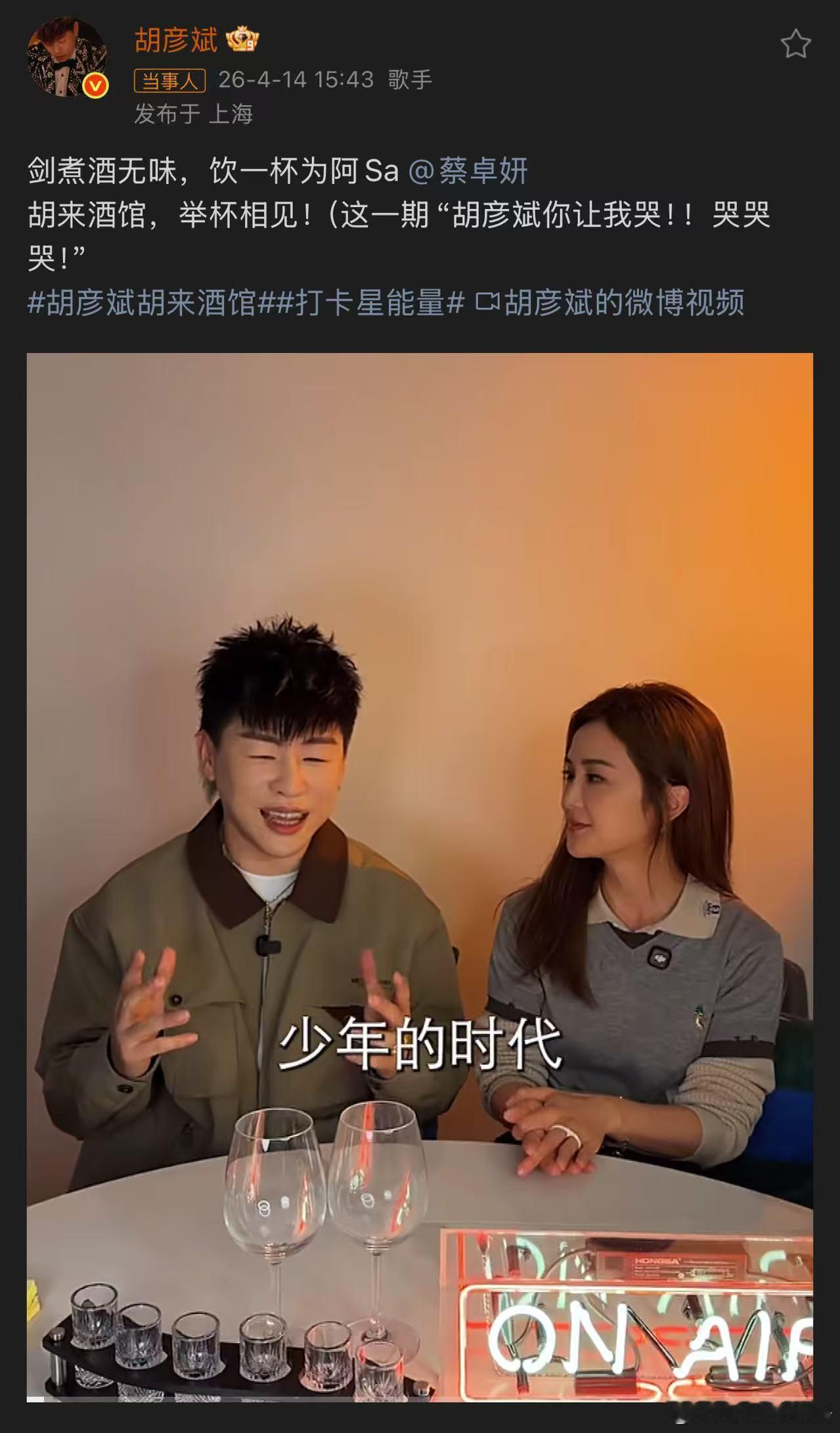 《胡来酒馆》这期看点十足!与阿Sa老友相聚氛围松弛,举杯瞬间唤醒青春记忆,有没有戳到你?胡彦斌剑煮酒无味为阿Sa举杯