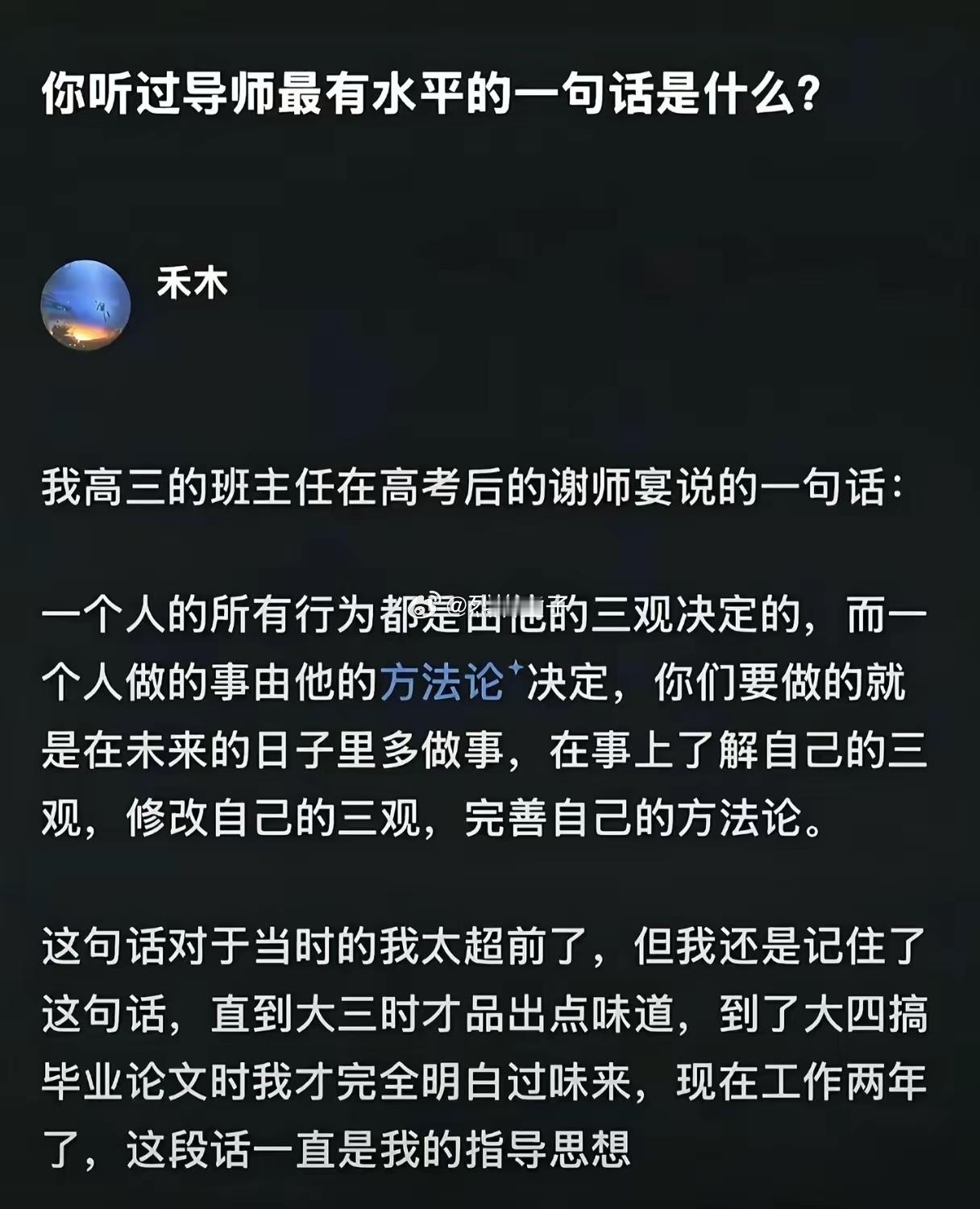 方法论指导做事,三观指导做人。三观垃圾,又没有做事的系统方法论,人过了30就已经死了。
