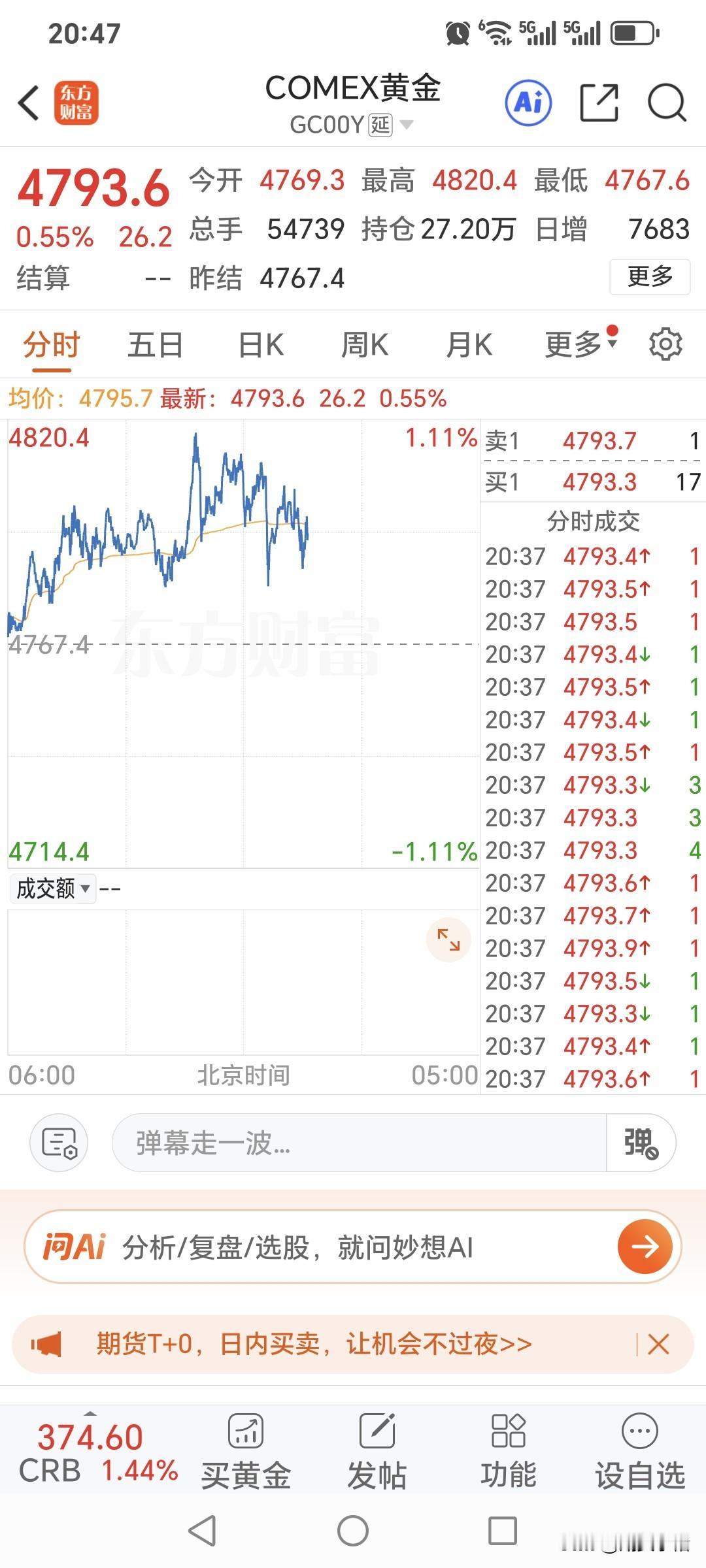 周二, 国内黄金期货 偏强运行,止跌回升。 今晚,还能继续上涨? 先看下国际金价走势情况, 国际金价4793.6美元, 基本上和15点相等。 不过由于周二结算价 大幅低于收盘价, 因此今晚国内黄金期货 高开概率非常大!