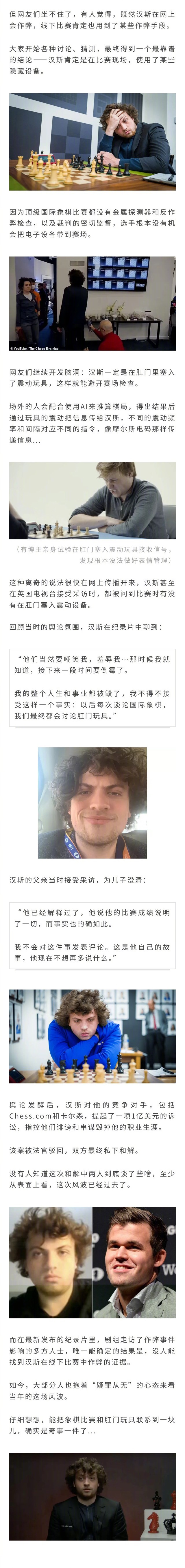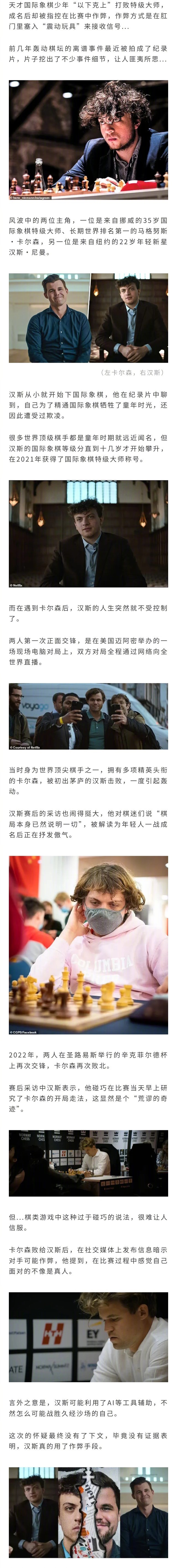 国际象棋小将汉斯前几年战胜大师,被指是在菊花里塞入了震动玩具作弊...如今事件的纪录片发布,汉斯回顾当年闹剧称,自己蒙受冤屈受了很大影响...
