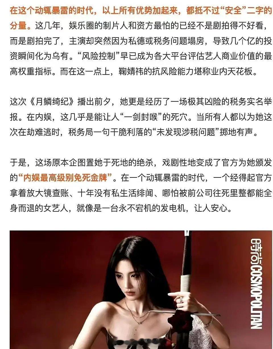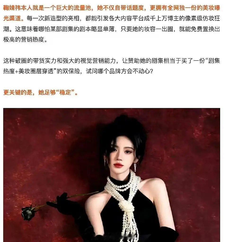 业内认证鞠婧祎自带巨大流量➕官方颁发“内娱最高级别免死金牌”的稳定