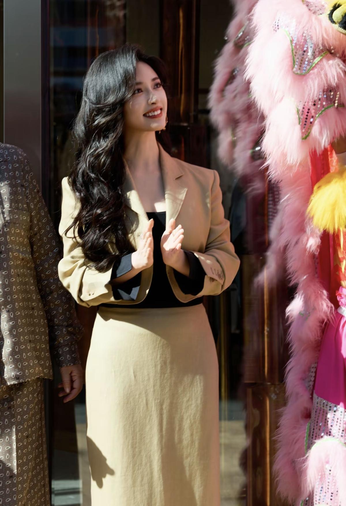 被沈月的状态惊艳到!阳光底下的大波浪和驼色套装,贵气感直接拉满[赞]原来沈月也能这么有御姐气场,港风造型真的太适配她了[给力]娱乐明星