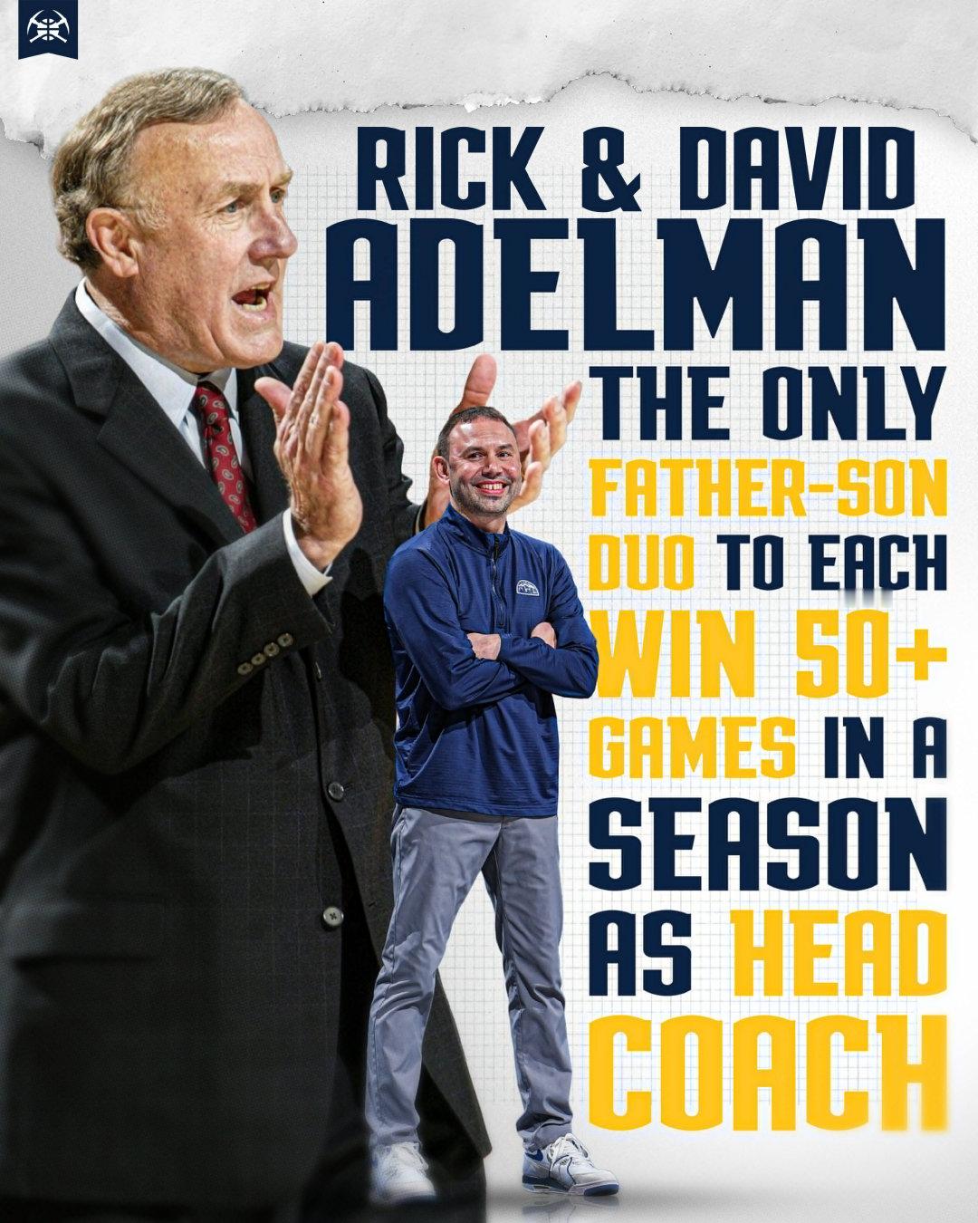 虽然平时被大家黑成碳,但是小水獭🦦还是做到了一些事情的。根据球队官方发布的海报,老&小阿德尔曼是唯一一对都在NBA单赛季获得过50+胜利的教练父子,恭喜