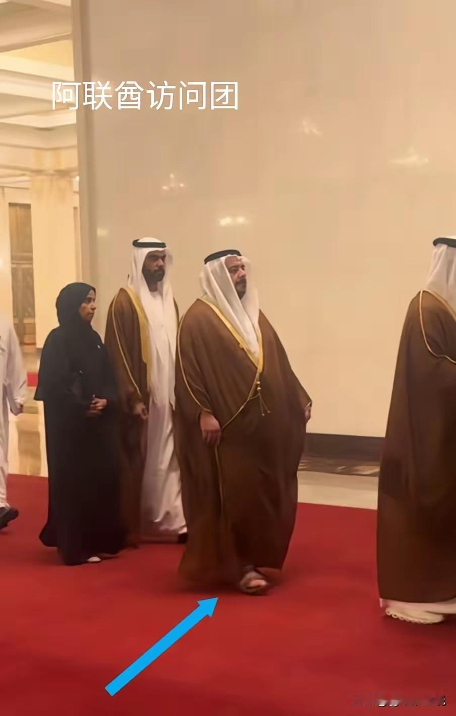 阿联酋王爷来中国访问,居然穿的是拖鞋!要知道北京现在是初春,温度也就十来度,穿凉鞋肯定脚会冷。中东王爷们穿着其实很随意:头顶一块布,天下我最富;脚上一拖鞋,银行存款无数。不过最近王爷们估计心情不好,伊朗和美国/以色打的不可开交,不是炸油田就是炸天然气,现在石油都运不出来了。王爷们估计太着急来东大,穿双拖鞋就赶飞机了,拖鞋对王爷们而言是奢华的低调!