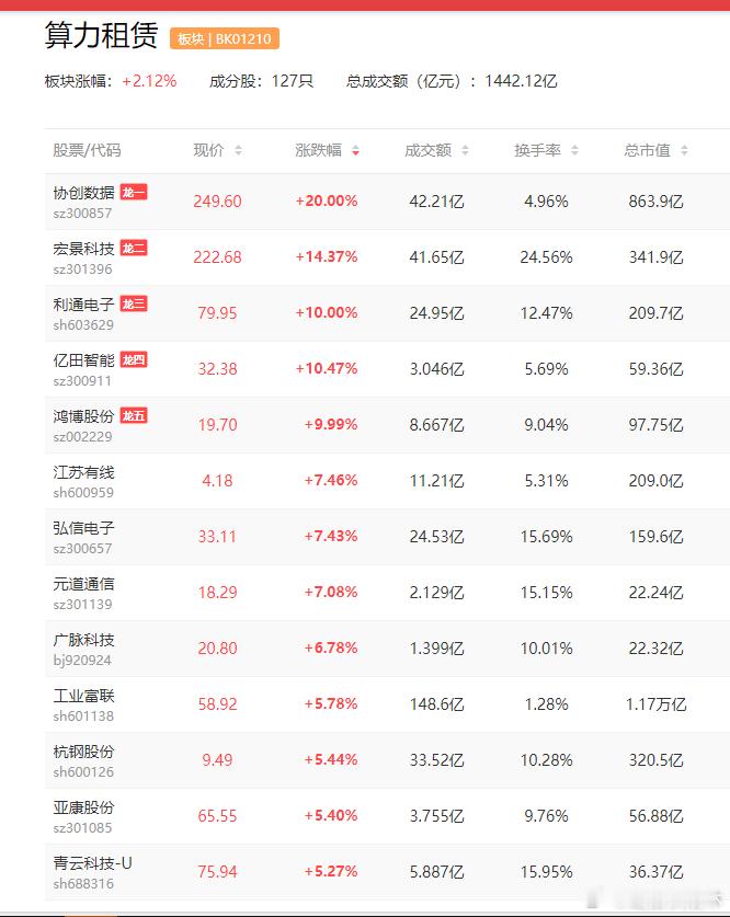而国内部分掌握高端算力芯片资源并实现项目落地的头部租赁公司的卡位优势更为明显,随着板块整体普涨修复的持续,后续资金持续聚焦率先业绩落地的优质标的仍是大概率事件。