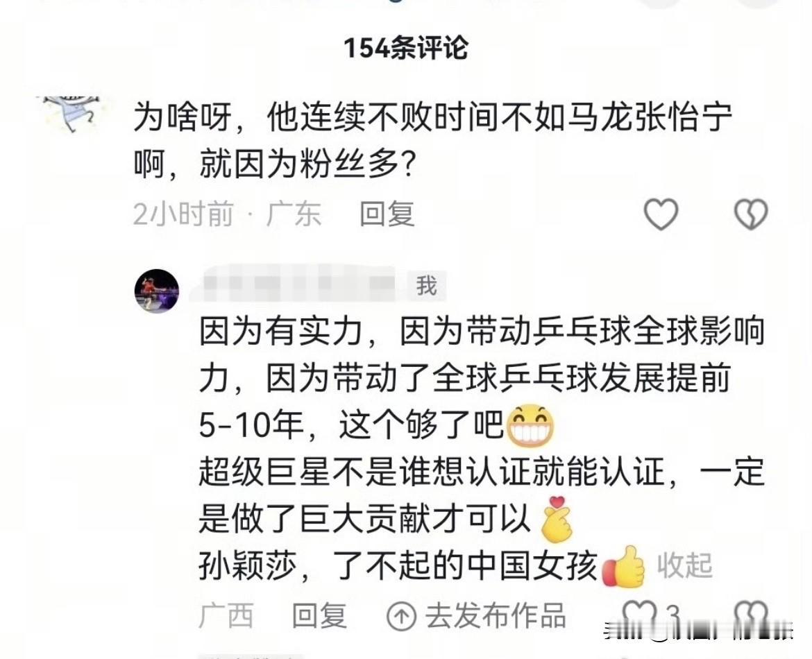 世界乒联刚刚发布重要消息,世界乒联以超级巨星认证孙颖莎 中国也算是有了自己Megastar哇! 真的是最优秀的女孩子 超越了性别这条界限 她带动了乒乓球全球影响力和发展 这个称号实至名归! 太有实力了!真的大快人心!争气的小姑娘 能被世界乒联赋予这荣誉 可想而知她得有多强 她是本次世乒赛所有参赛选手中唯一获此官方顶级称号的运动员,而且是女运动员!真所谓巾帼不让须眉在她身上体现的淋漓尽致。 我们为她感到骄傲和自豪!无赛场 孙颖莎