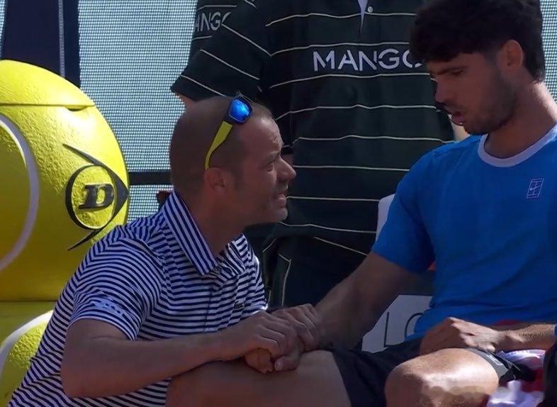 第一盘5:4时,阿尔卡拉斯申请了医疗暂停查看了他的手腕情况,赛后发布会他谈到