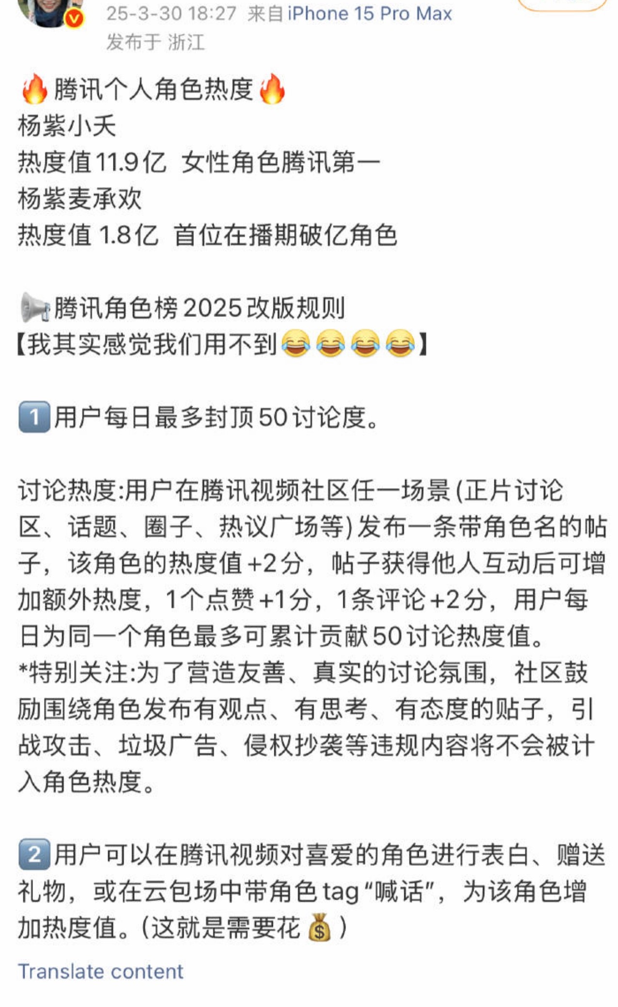 关于角色热度,有人第一部角色热度才4千万,第二部鹅从预热开始特搞的,发动态就加
