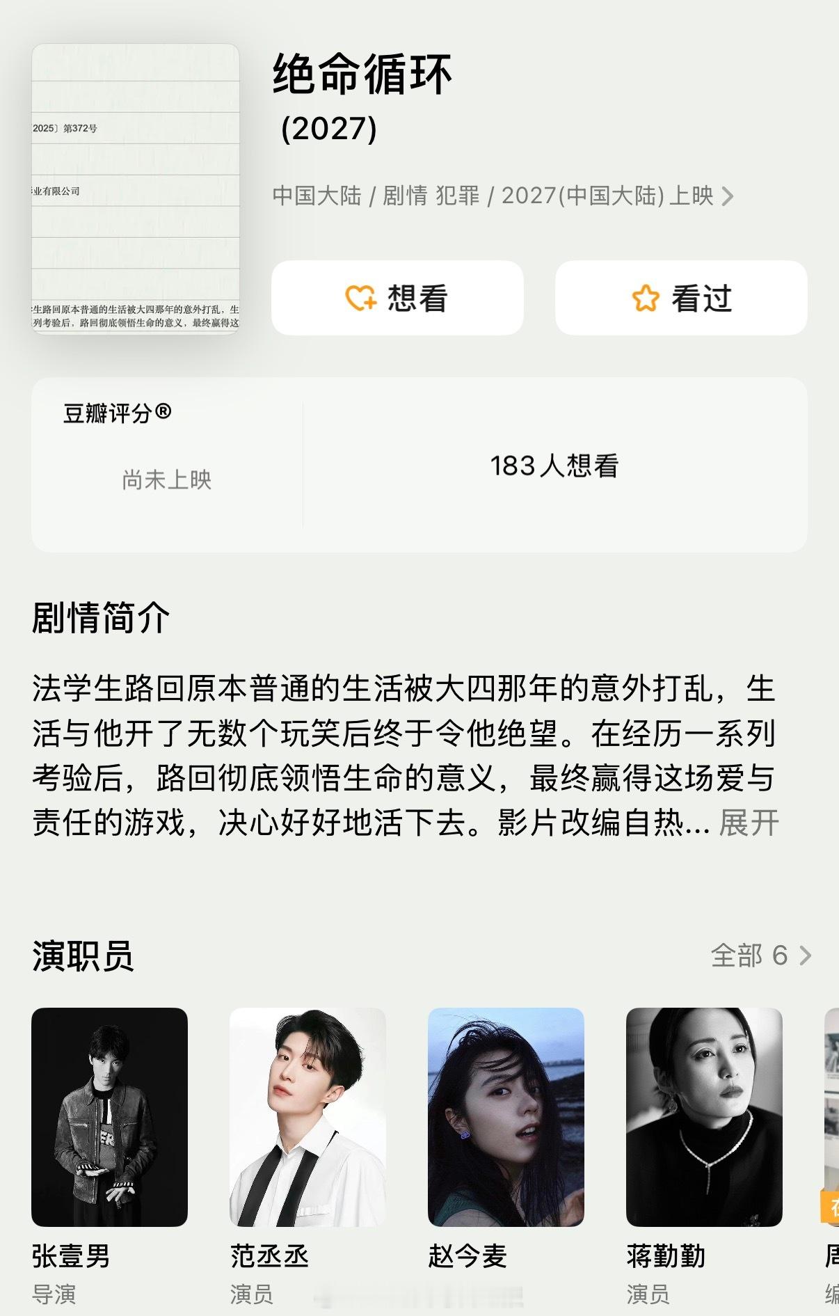 范丞丞、赵今麦主演的《绝命循环》已经开机,范丞丞真的压番赵今麦了嘛