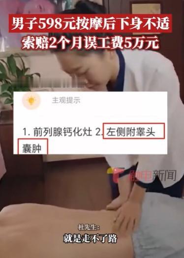 浙江杭州,男子去足浴店,花了598元,给全身按了一下摩,结果回家之后,全身不适,都走不了路了,下体更是有一个囊肿,男子认为自己的不舒服,还有那个囊肿,都是由于技师按得不对导致的,他要该店赔偿两个月的工资5万元。 杭州从事建筑行业的杜先生因平日工作劳累,想找地方放松身体,2025年5月17日,他便前往当地一家足浴店,消费598元选择了店内包含全身按摩与柔式瑜伽的尊享套餐。 按摩结束后杜先生起初并未察觉异样,但到了第二天,他开始感觉全身明显不适,下半身尤为严重,疼痛感强烈到几乎无法正常行走,更别提从事原本的建筑工作。 察觉到情况不对,杜先生立即前往医院检查,经超声诊断结果显示其左侧附睾头部出现直径1.2厘米的囊性结构,确诊为左侧附睾头囊肿,医院给出的医学意见表明,这类囊肿的成因通常有两种,一是细菌感染引发的炎症反应,二是外力作用导致的机械性损伤。 杜先生对此坚信不疑,他表示自己此前从未有过相关病史,身体一直健康,这次突然发病,完全是因为足浴店技师按摩操作不当所致,他回忆按摩过程中,技师曾多次按压到腹股沟手法较重,正是这不当的按压造成了身体损伤,进而引发了囊肿与全身不适的症状。 事发后杜先生第一时间找到足浴店讨要说法,要求对方承担相应责任,足浴店方面在得知情况后,为息事宁人,先行支付了杜先生的全部医疗费用,但并不认可自身存在过错,称支付医药费只是出于和气生财的经营考量,并非承认技师操作有误,可杜先生并不满意。 他认为除了医疗费,足浴店还需赔偿自己因伤病无法工作产生的误工费,他声称自己每月收入约2.5万元,此次患病至少需要休息两个月才能恢复工作,因此向足浴店提出了5万元的误工费赔偿要求。 对于这一索赔金额,足浴店明确拒绝,双方就此产生严重分歧,协商始终无法达成一致,杜先生随后选择报警,并向市场监管部门投诉,相关部门接到反映后,已介入对事件展开调查。 杜先生也表示,若后续调查与调解仍无法解决问题,不排除通过法律诉讼的途径,进一步向足浴店追责,医学上附睾头囊肿的形成往往存在滞后性,单次按摩就引发急性囊肿并伴随剧烈疼痛的情况,与典型病症表现存在差异,要直接认定按摩与囊肿的因果关系,缺乏充足的医学证据。 不仅如此杜先生提出5万元误工费,却无法提供工资流水、纳税证明等有效收入凭证,也未拿到医院开具的需全休两个月的诊断证明,其索赔金额的计算缺乏客观依据。 按照杭州当地建筑行业平均工资标准核算,即便认定需赔偿误工费,金额也远低于5万元,截至报道该事件仍在进一步调查处理中,尚未有最终的定论与处理结果。