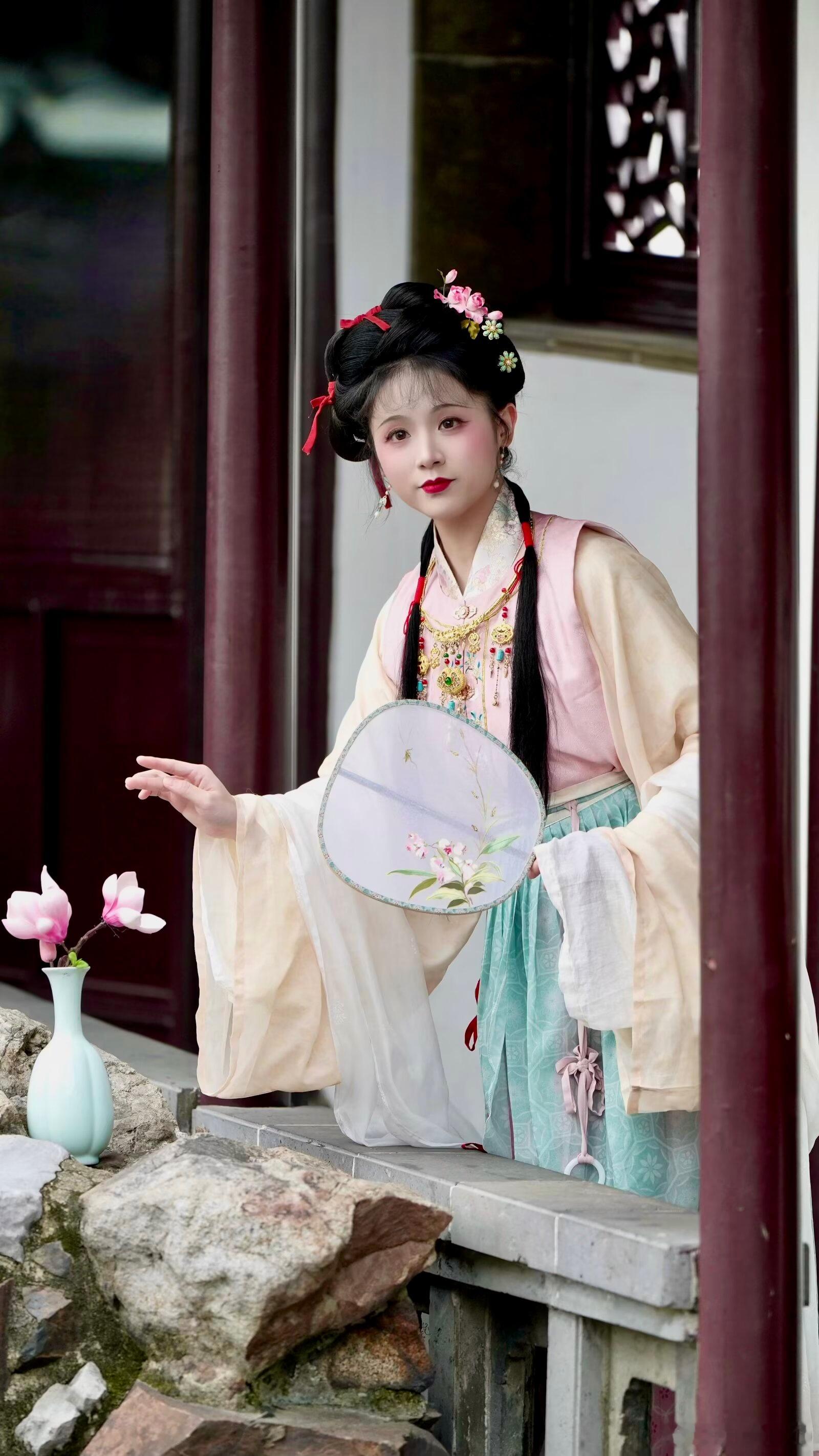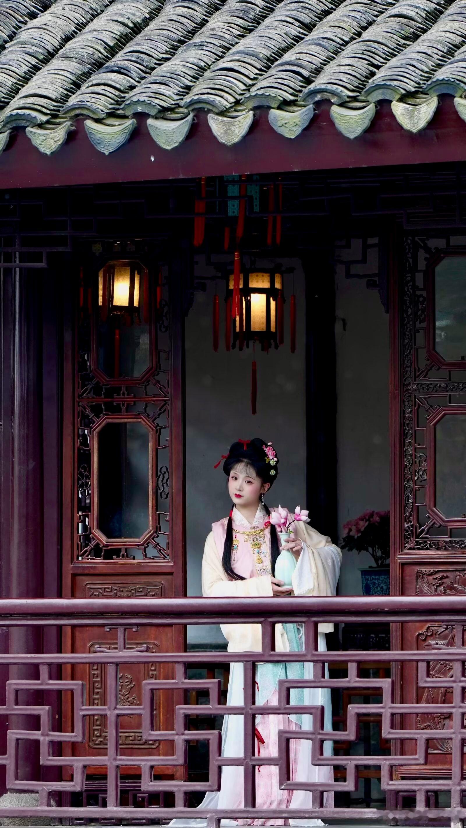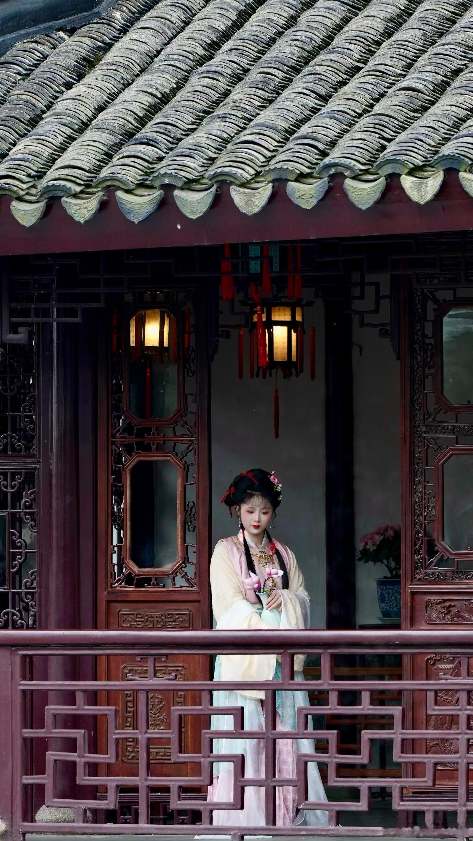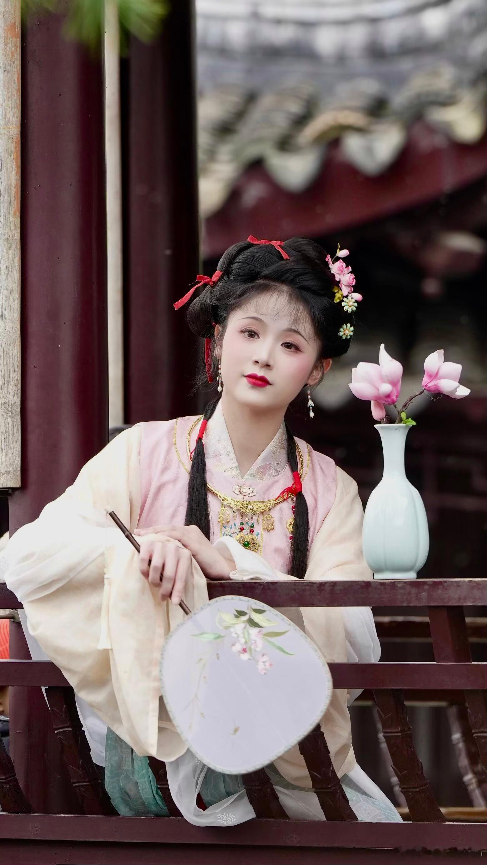 凭栏听风,执扇赏春。玉兰初绽,汉服映色,把春日的浪漫,都定格在这一瞬。苏州园林约拍漂亮小姐姐汉服美人汉服日常国风汉服大赏 苏州