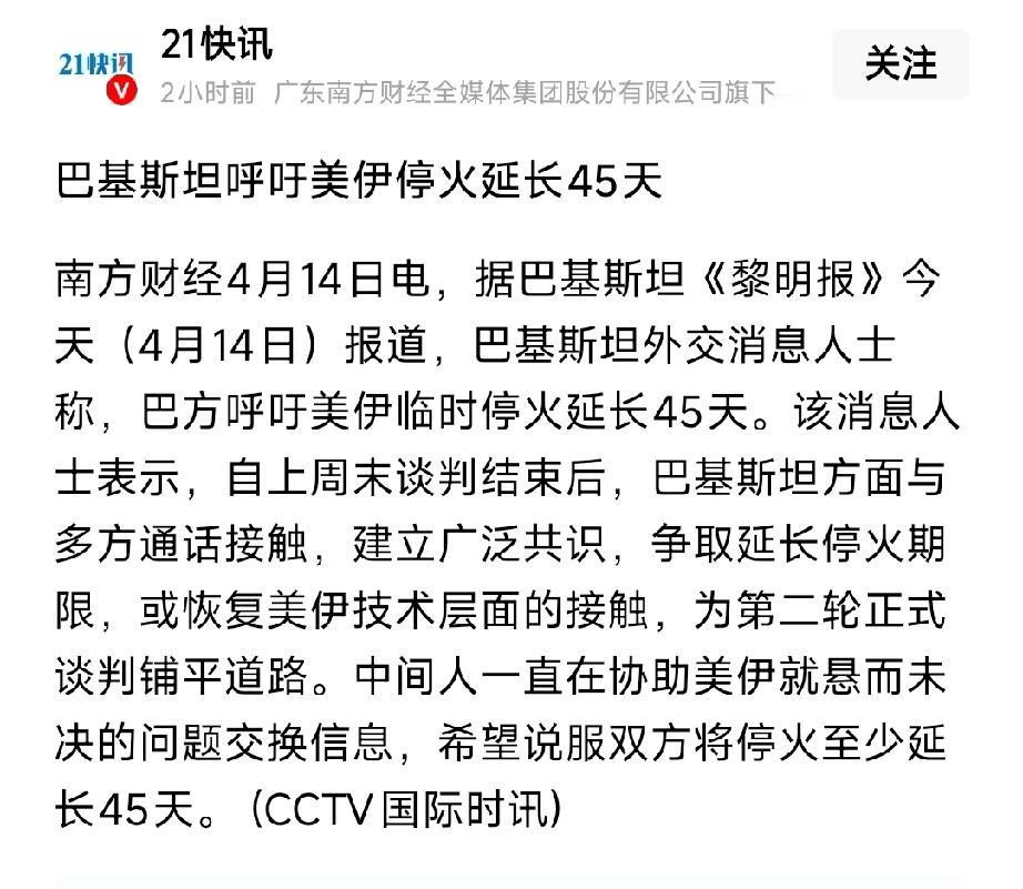 停火要延长45天!巴基斯坦强力斡旋,美伊谈判重启,油价150美元关口剧烈震荡 4月14日突发!巴基斯坦正式呼吁,将美伊现有两周停火(4月22日到期)再延长45天,并推动第二轮谈判 。巴方正与多方密集沟通,中间人持续传递信息,为技术磋商与正式会谈铺路。 伊朗愿谈、美国施压、三航母逼近、霍尔木兹海峡封锁加剧。亚洲战前原油耗尽、布油现货逼近149美元,期现价差即将收敛 。 延长停火=短期缓和、长期供应缺口仍在。谈判反复、封锁持续、现货逼空,油价在150美元关口剧烈震荡。一旦停火落空、战事重启,油价将直接突破150美元,能源链再迎主升浪 。 核心受益标的(3只) 1. 中国海油(600938):高油价弹性最强,业绩暴增确定性高 2. 中远海能(600026):VLCC运价暴涨,封锁+绕行双重受益 3. 中油工程(600339):能源储运建设,长期油气基建需求扩张 投资必警:停火谈判变数极大,延长或破裂均可能引发油价大幅波动,以上标的仅供参考,不构成投资建议。