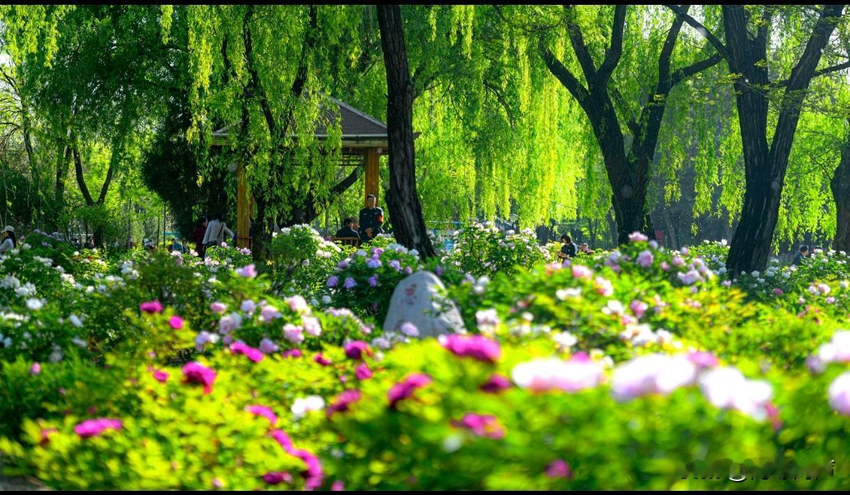 暮春访东湖牡丹园 风骤雨疾花落去, 东湖遍地绿意葱。 残红坠入清波里, 犹带春光一抹红。