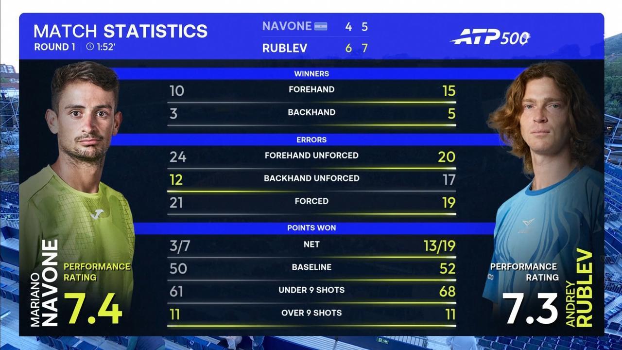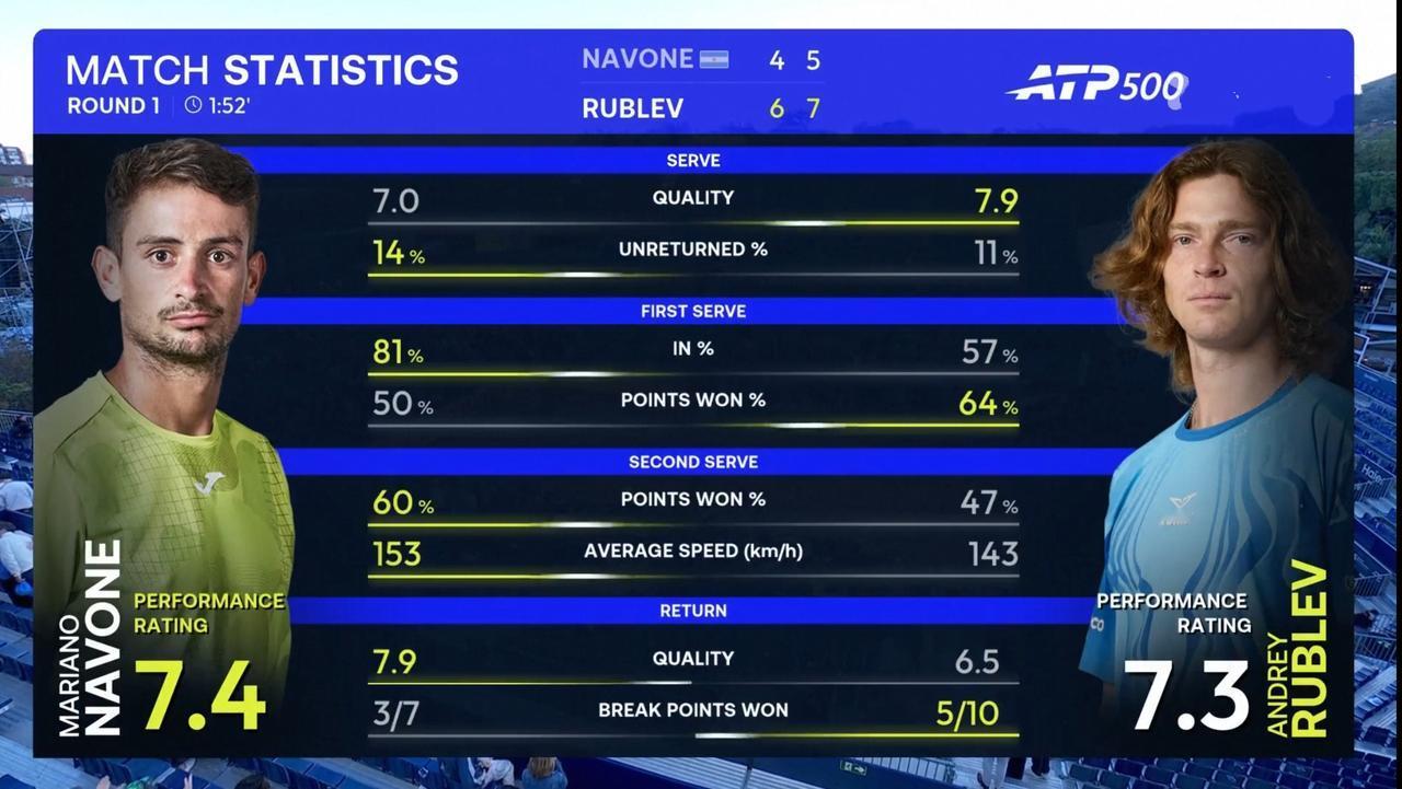 卢布列夫巴塞罗那公开赛首轮完胜晋级 北京时间2026年4月14日,巴塞罗那公开赛第一轮,卢布列夫对阵纳沃内。 结果,耗时1小时52分钟,卢布列夫以2:0的比分完胜纳沃内,成功晋级。 第一盘。前七局各自坚守住自己的阵地 比分来到4:3。第八局,卢布列夫在对手握有连续两个局点的情况下逼出破发点,经历两次平分后成功破发,5:3。第九局,卢布列夫发球胜盘局,被逼出一个破发点,随即遭遇破发,5:4。第十局,纳沃内非保不可发球局,卢布列夫逼出连续两个破发点,随即完成破发。 6:4,卢布列夫先下一城。 第二盘。前四局各自保发。第五局,纳沃内直落四分破发成功,3:2。第六局,卢布列夫逼出一个破发点,随即兑现破发,3:3。之后各自保发,比分来到6:5。第十二局,纳沃内退无可退发球局,在握有一个局点的情况下被逼出破发点,随即遭遇破发。 7:5,卢布列夫再下一城。大比分2:0,卢布列夫完胜晋级。 值得一提的是,卢布列夫是本届巴塞罗那公开赛所处半区阿尔卡拉斯最强劲的对手。 希望卢布列夫有更加出色的发挥。