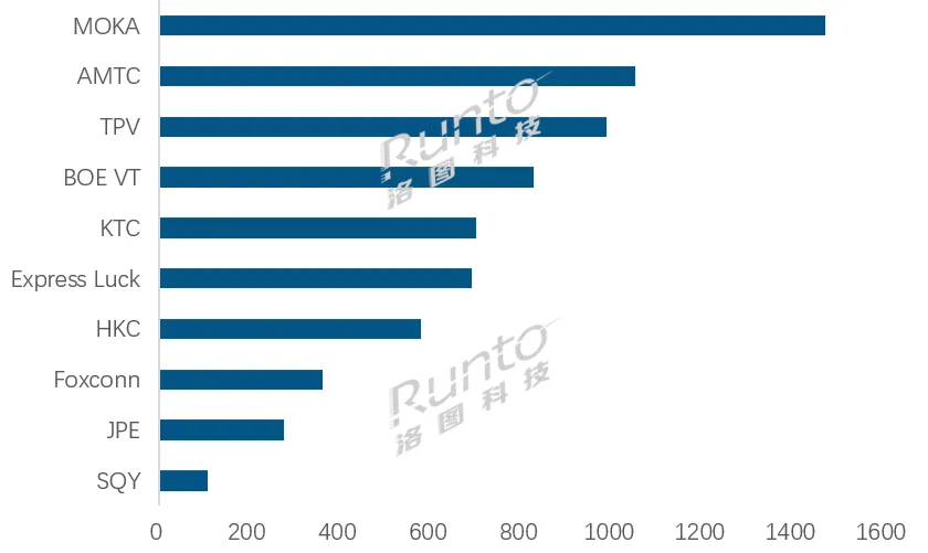 AMTC(兆驰)3月的出货量约为105万台,排名专业代工厂第二,同比小幅下降5.1%,但环比2月翻倍增长。