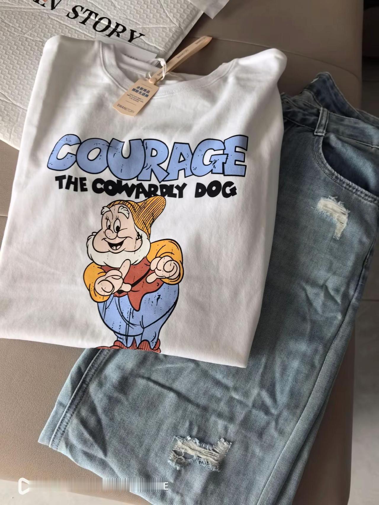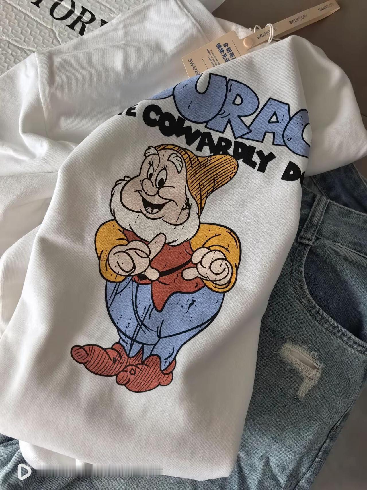 我是丽姐。最近都穿了几天短袖了,今天穿丽姐家的小矮人印花短袖,出门的时候外面搭个牛仔外套就可以了小矮人印花短袖 我是丽姐