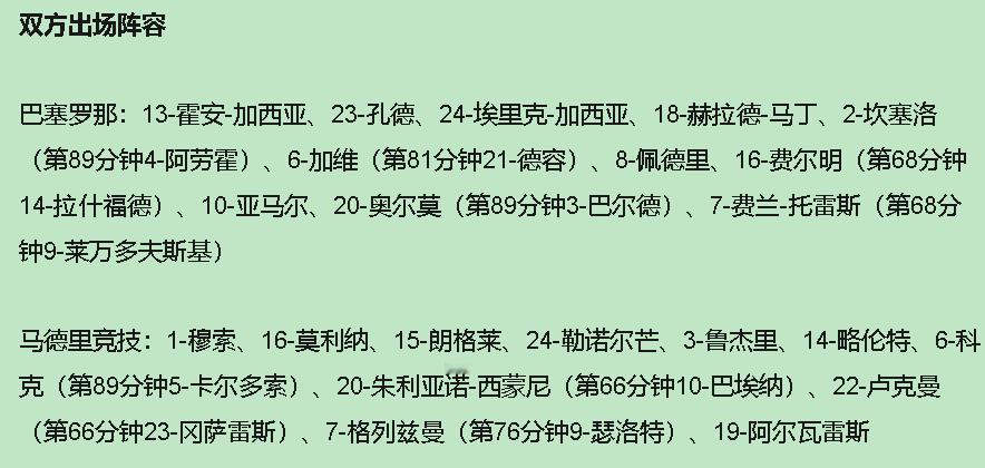 您猜怎么着?巴萨昨儿个踢了场好球,然后回家了。赢了2-1,总比分2-3——这叫什么事儿?这叫欧冠的黑色幽默,比相声还逗:您砸半天挂,底包袱是自个儿下台。 亚马尔第四分钟那脚世界波,哎哟喂,那是17岁?那是赛亚人!费兰第24分钟那脚爆杆,总比分2-2,我当时都从沙发上弹起来了——诺坎普奇迹搬家到马德里了?醒醒。第31分钟,马竞就三次传球,略伦特横敲,卢克曼包抄,完事儿。您这边71%控球把人家摁在半场摩擦,人家一回手就是一记闷棍。这叫反足球?这叫要命。 下半场更憋屈。费兰那球被VAR吹了,行,认栽。可埃里克-加西亚第79分钟那红牌,说白了,就是小孩哥气性太大,压不住火。拉倒瑟洛特,VAR一瞅,直红。少打一人,亚马尔再神也带不动这帮"大牌"——莱万上来踢得跟隐身术似的,拉什福德拿球就带,带了就丢,佩德里累得快吐血。21脚射门,数据漂亮得跟年画似的,可记分牌认的是总比分。 西蒙尼这老头,您骂他摆大巴踢得辣眼,他笑您买机票。这就是马竞的哲学:我不要场面,我要命。巴萨这群小孩天赋溢出屏幕,但欧冠是算账的买卖,不是才艺展示。首回合0-2挖的坟,次回合填不上。 弗里克说十人作战完美,话没错,但完美不等于晋级。年轻人,这学费交得肉疼,但得认。下回再遇到这种老狐狸,别光想着怎么过人,得想着怎么活着。马竞活着进四强了,您再不服,也得憋着。这,就是足球。