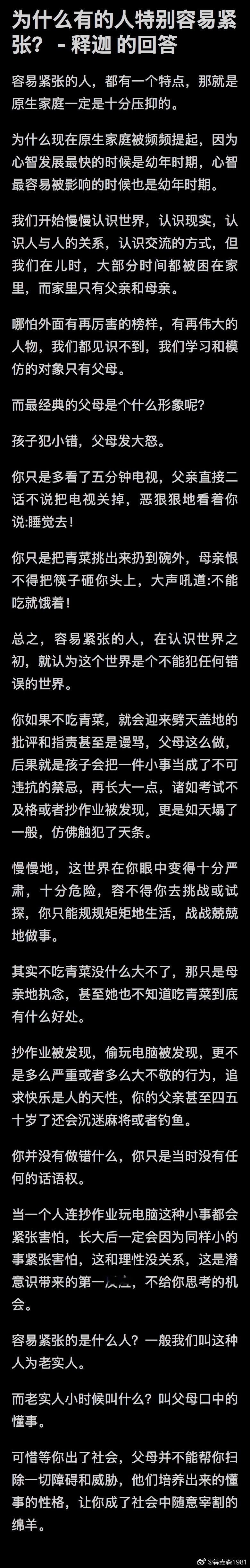 为什么有的人特别容易紧张?网友观点:因为原生家庭压抑