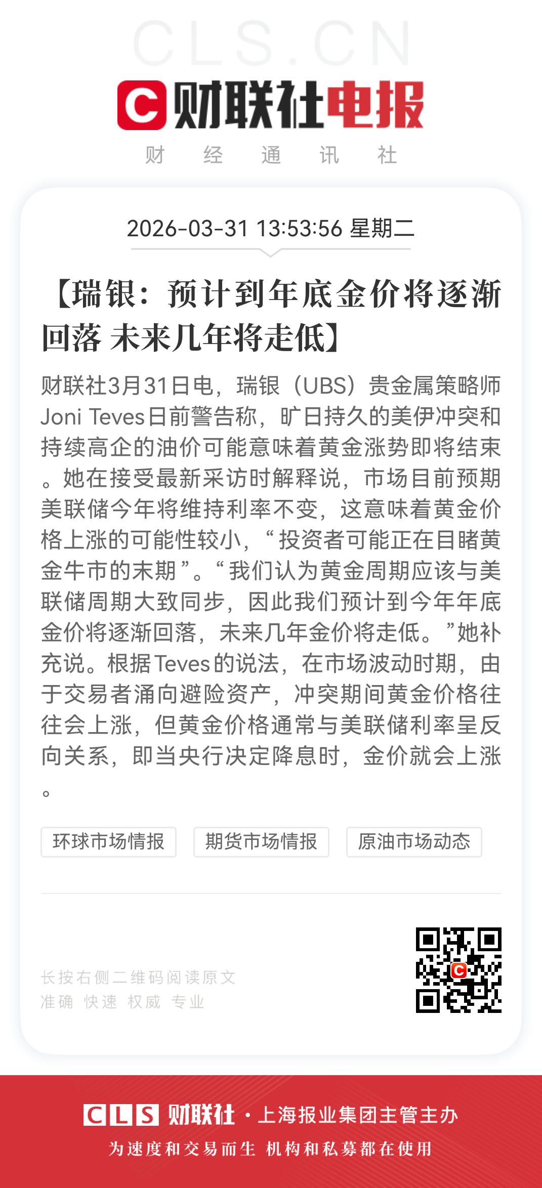 黄金牛市还在吗?高盛和瑞银观点完全对立 现在这个时点黄金接下去事继续牛市还是牛市结束? 全球两大顶级投行高盛和瑞银观点完全对立 高盛仍然坚持黄金牛市 瑞银则全面看空黄金 大家认为黄金牛市还在?
