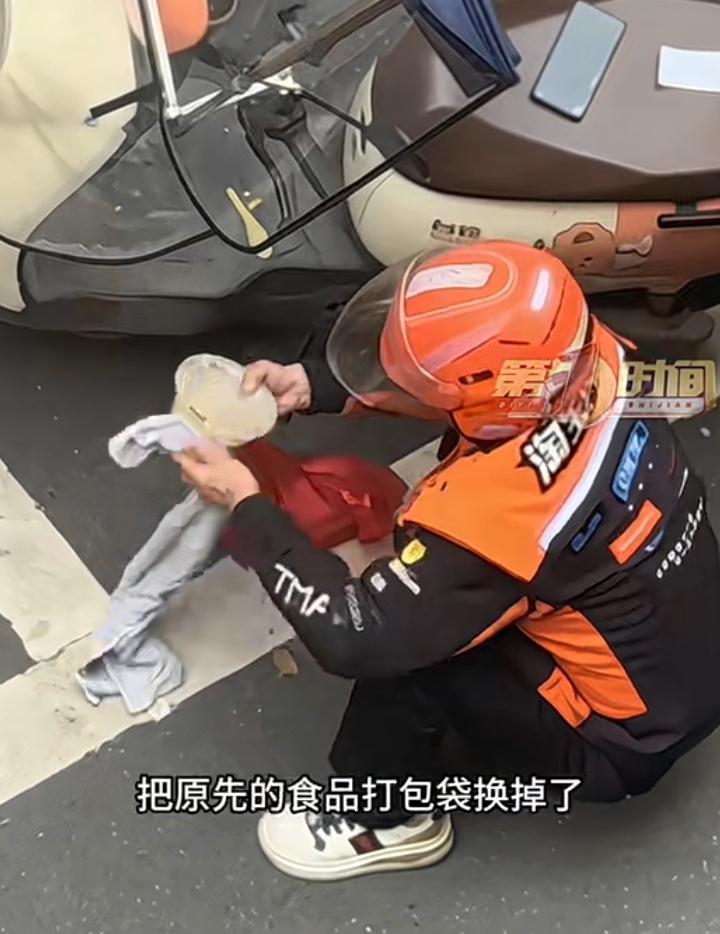 这名外卖员也真够背的,范女士点了一份外卖,她在楼上耐心的等待心心念念的特色汤,虽然表情平静可内心难掩那份对美食的渴望时不时的看向楼下的单元门,突然一个熟悉的身影让她喜出望外,可接下来的操作有让她云里雾里。 只见外卖员停好车拿出外卖,他没有急于上楼,这和其他外卖员争分夺秒的送餐有点背道而驰,他非常熟练的拿出一个红色的塑料袋,又拿出一个看上去可能包浆了的抹布对着外面就是擦拭,筷子也擦了勺子也擦了,而且据范女士介绍袋子上还有点土,她接外卖的时候问外卖员刚才在楼下干什么,他神情慌张语无伦次迅速的跑了,范女士看着心心念念的特色汤,心里五味杂陈,经过一番思想斗争她还是拍了照片发给商家,经过一番交流后店家同意退款,可她却提起特色汤走向了垃圾桶。