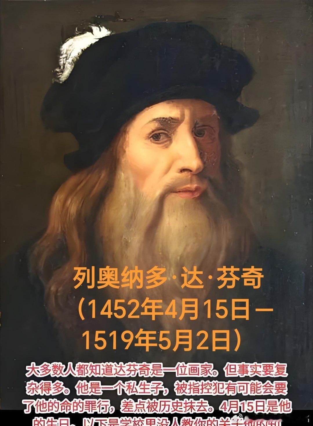 历史上的今天:意大利著名画家达芬奇出生