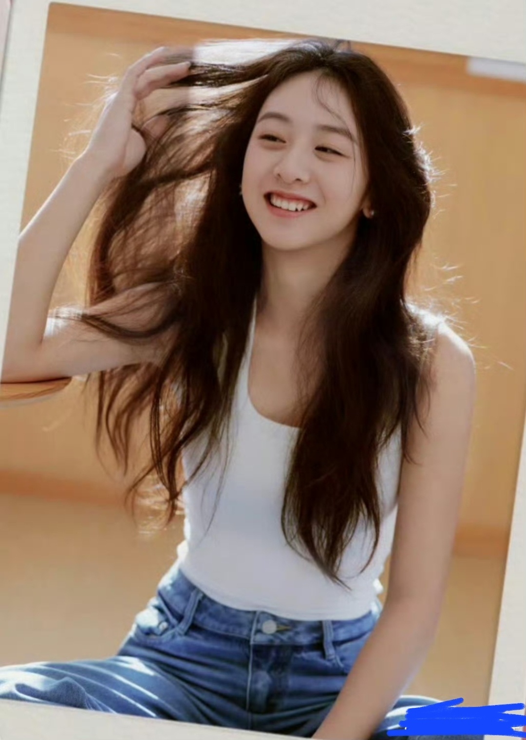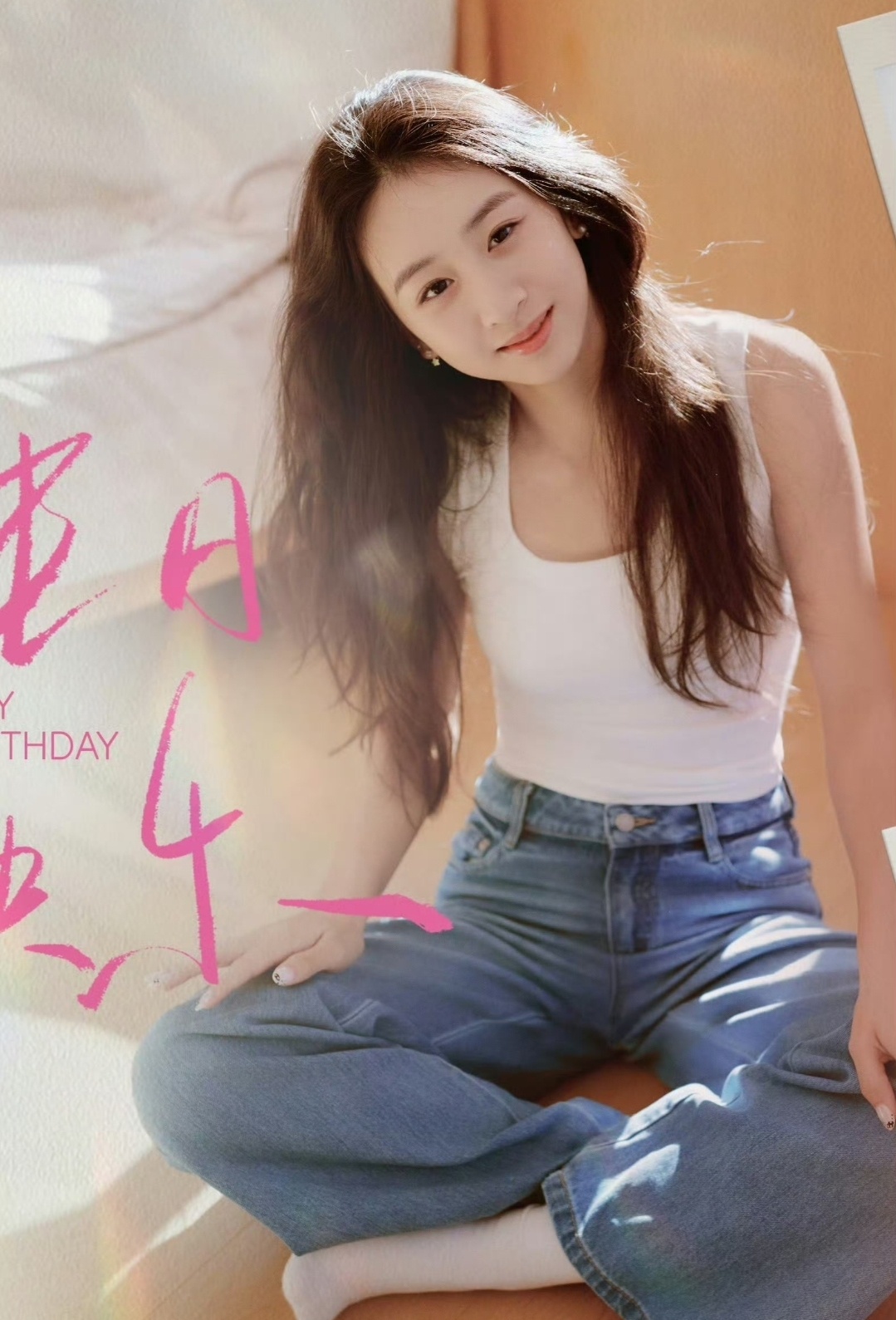 这组生日写真真的太绝了!没有华丽礼服和浓艳妆容,简简单单白背心配牛仔裤,蓬松长发被阳光裹上金边,歪头浅笑时眉眼弯弯灵动温柔,撩起头发大笑时又明媚得晃眼,清清爽爽的元气感隔着屏幕都要溢出来,松弛又鲜活!