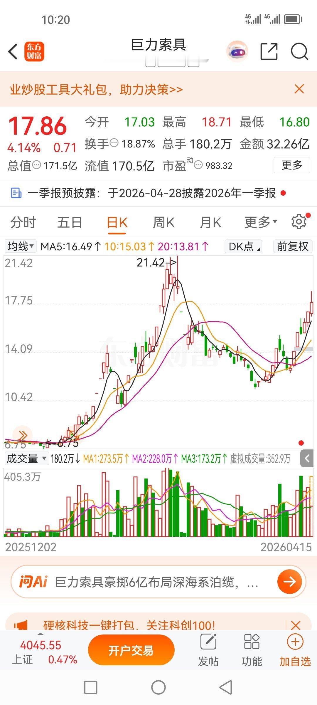 巨力索具002342,牛不牛,今天还在向阳而上,还依然努力蒸蒸日上!