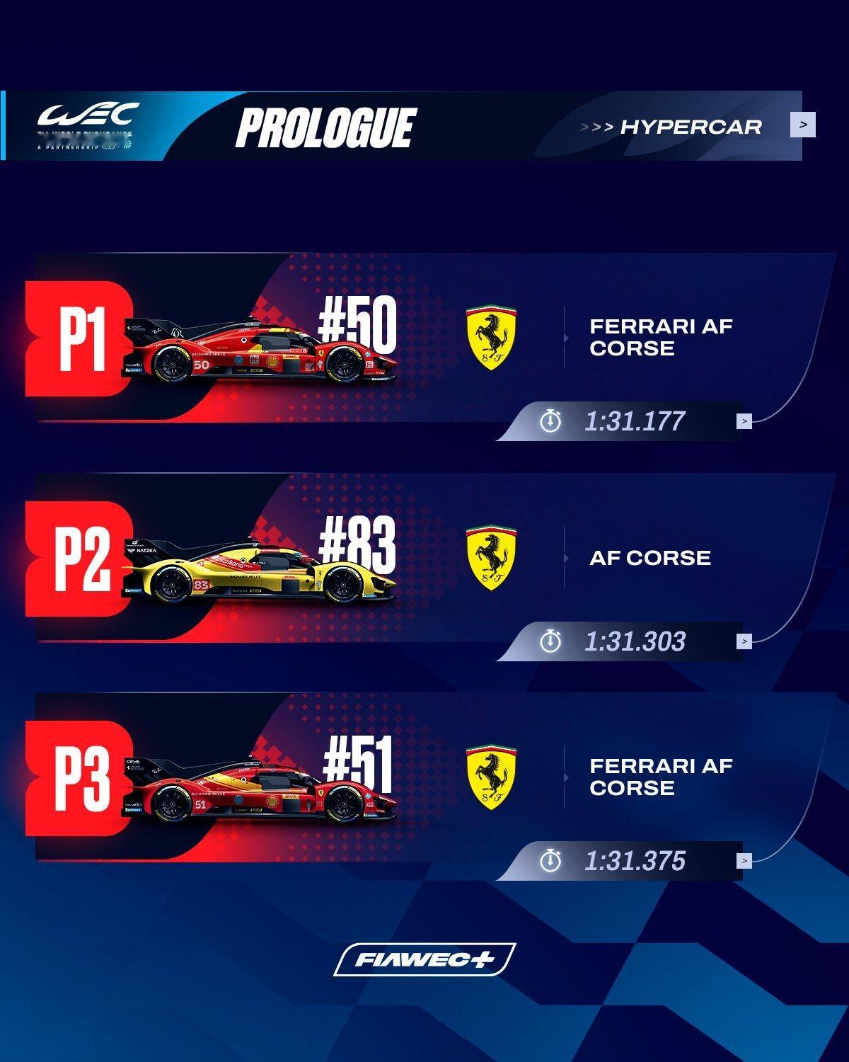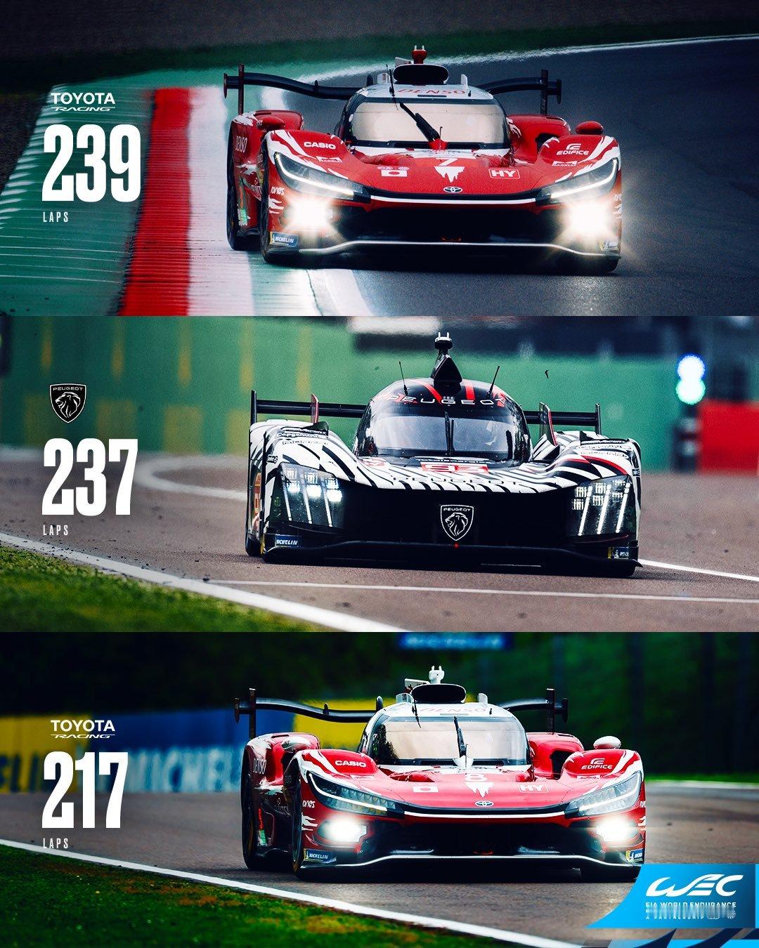 Hypercar组法拉利在单圈速度上领先,不过远未到去年排位赛时的水平,丰田继续当劳模,两台赛车均进入了行驶里程数的前三,至于尾速的部分标致和凯迪拉克都跑出了接近320km/h的水平。