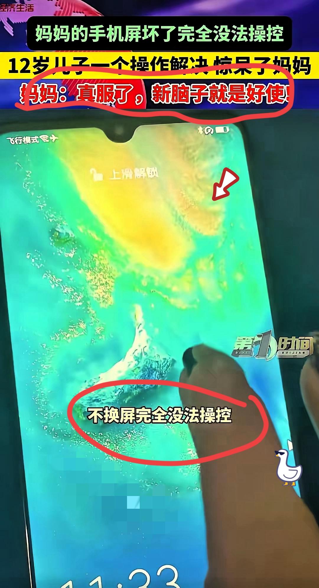 手机摔成“砖头”没法用?12岁儿子一招直接救场,宝妈省下几百块直呼没想到! 屏幕彻底失灵,大人第一反应都是赶紧送修花钱换屏,可孩子偏偏不按常理出牌。一根OTG转接头接上鼠标,光标一出来,手机瞬间“复活”,这波操作直接看呆家长。很多成年人天天用手机,却不知道安卓自带外接设备的实用功能,反倒是从小接触数码产品的孩子,凭着爱摸索的劲儿,轻松解决了大人束手无策的难题。 其实不是孩子比大人聪明,而是我们习惯了遇事找专业、花钱买省心,思维被固定住,少了那份敢试敢探索的劲头。别总觉得孩子玩电子产品就是耽误事,正确引导,兴趣真能变成实打实的本事。